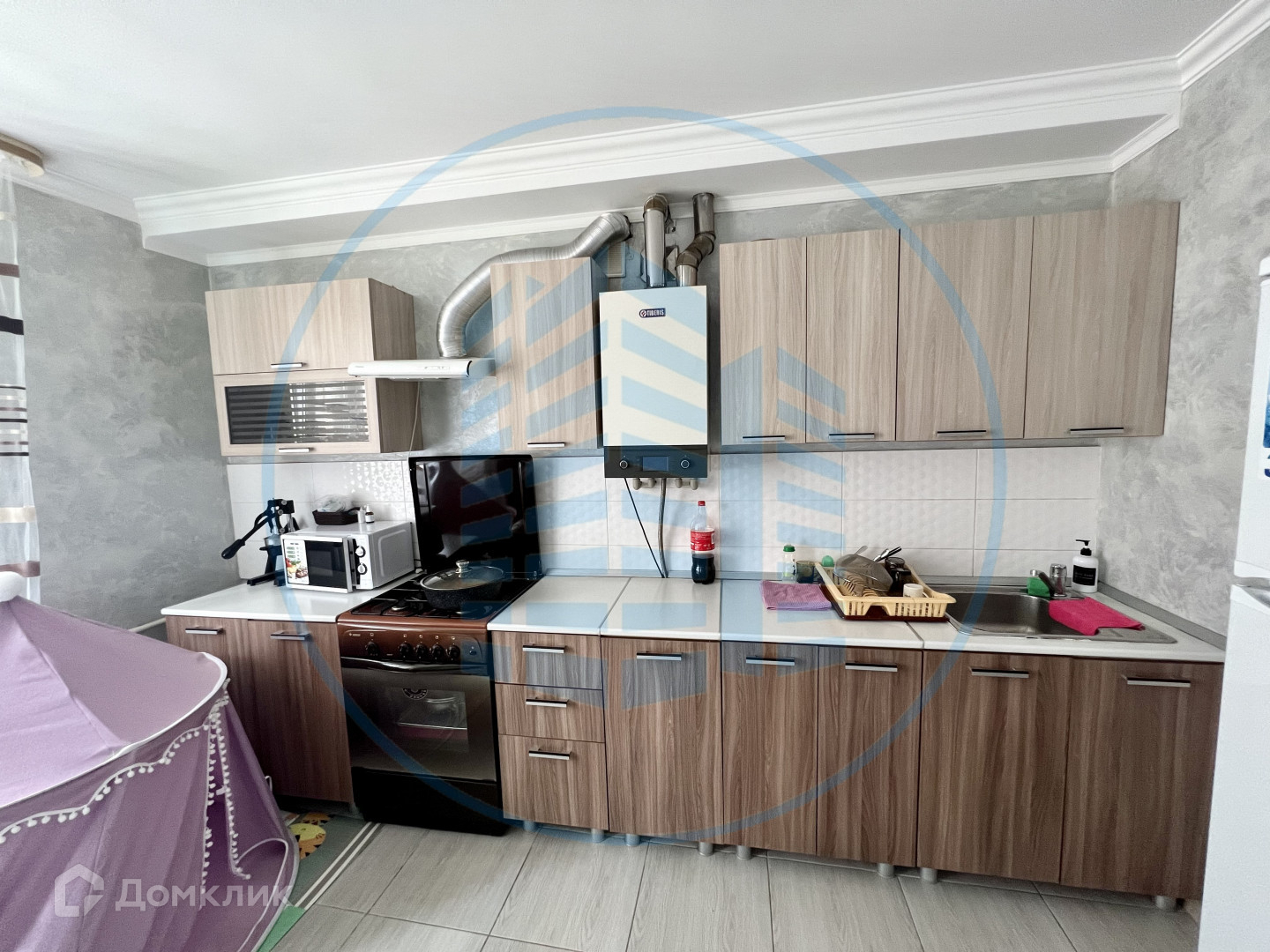 Остается кухонный гарнитур, печь и остальная мебель;