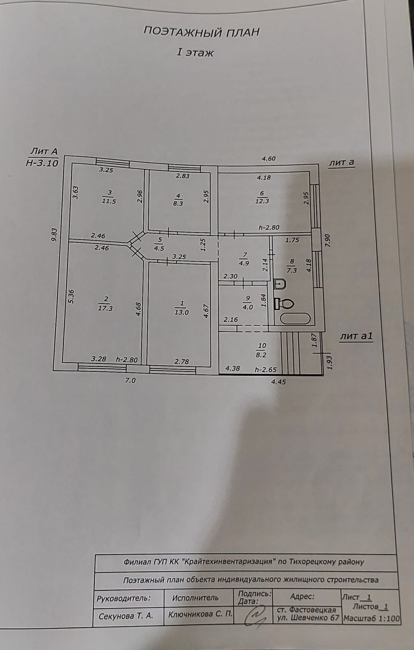 1-этажный дом, 83.1 м2, на продажу в станице Фастовецкой, улица Шевченко, 67