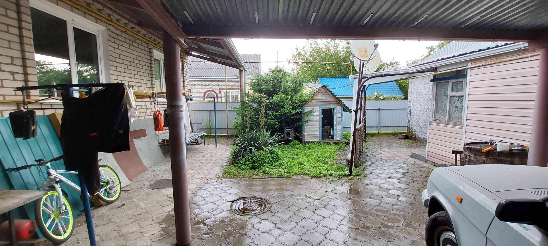 ДВОР: перед двором асфальтированная дорожка и подъезд, во дворе постелена плитка, клумба перед домом, за домом место для детской площадки или беседки, хоздвор забетонирован, в саду до огорода бетонные дорожки.