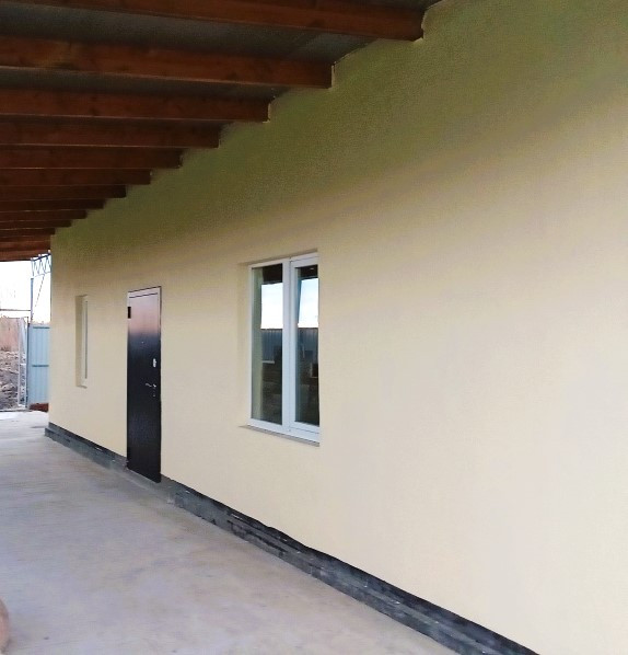 Одноэтажный жилой дом 2022 года постройки общей площадью 151,9 кв.м., расположен на земельном участке площадью 2500 кв.м. по ул.Красноармейской 142. Дом разделён на две части и имеет два входа — возможно проживание двух семей. Также возможно соединить эти две половины. Первая часть дома (помещения на поэтажном плане 1, 2, 3, 4, 5, 6) площадью 50 кв.м. состоит из прихожей, котельной, кухни-гостиной, спальни, ванной и туалета. Высота потолков — 2,81 см, двойные стеклопакеты, во всех помещениях тёплый водяной пол, отопление от электрического навесного котла «Navien» мощностью 12 кВт. (на участке подключено 380 Вольт), стены оштукатурены, сделана разводка электропроводки, установлены автоматы и трёхтарифный электросчётчик (кроме того, действует тариф для сельской местности), все розетки имеют заземление.