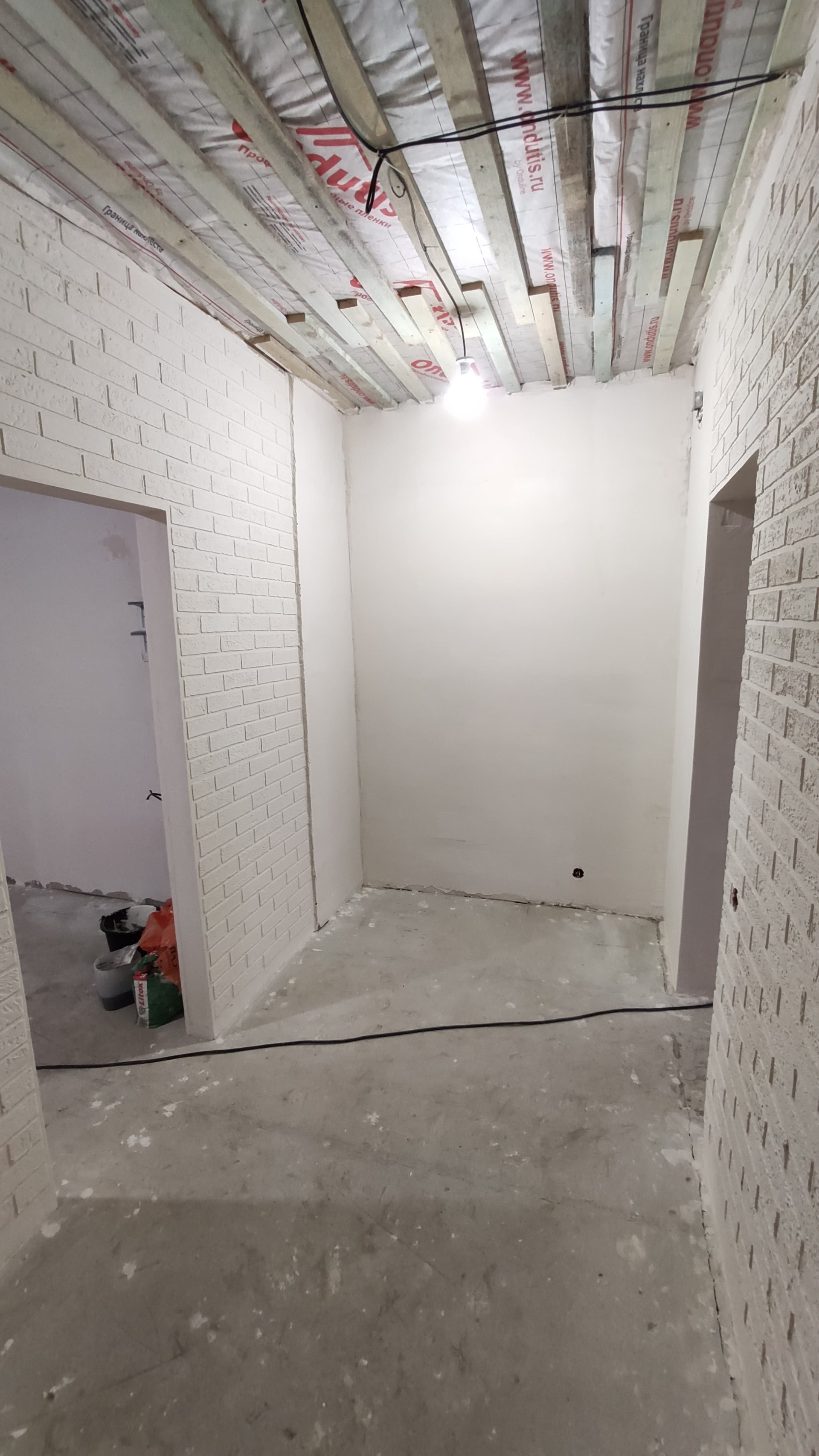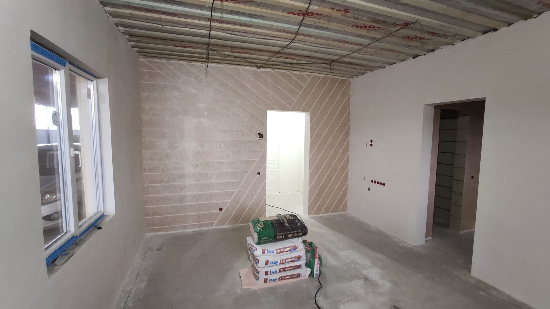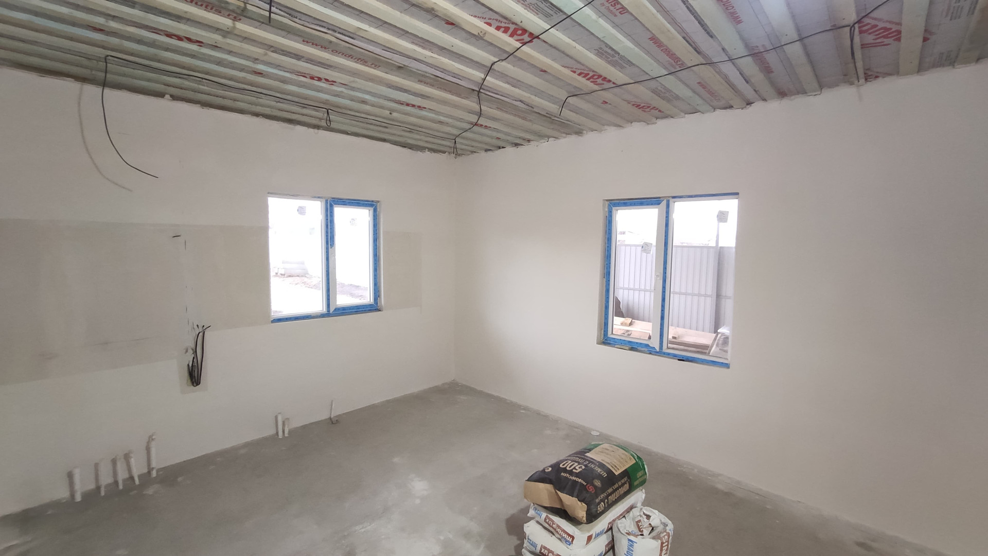 Во второй половине дома: в помещении № 7 выполнена черновая отделка, залит бетонный пол, в помещении № 8 отделка отсутствует.