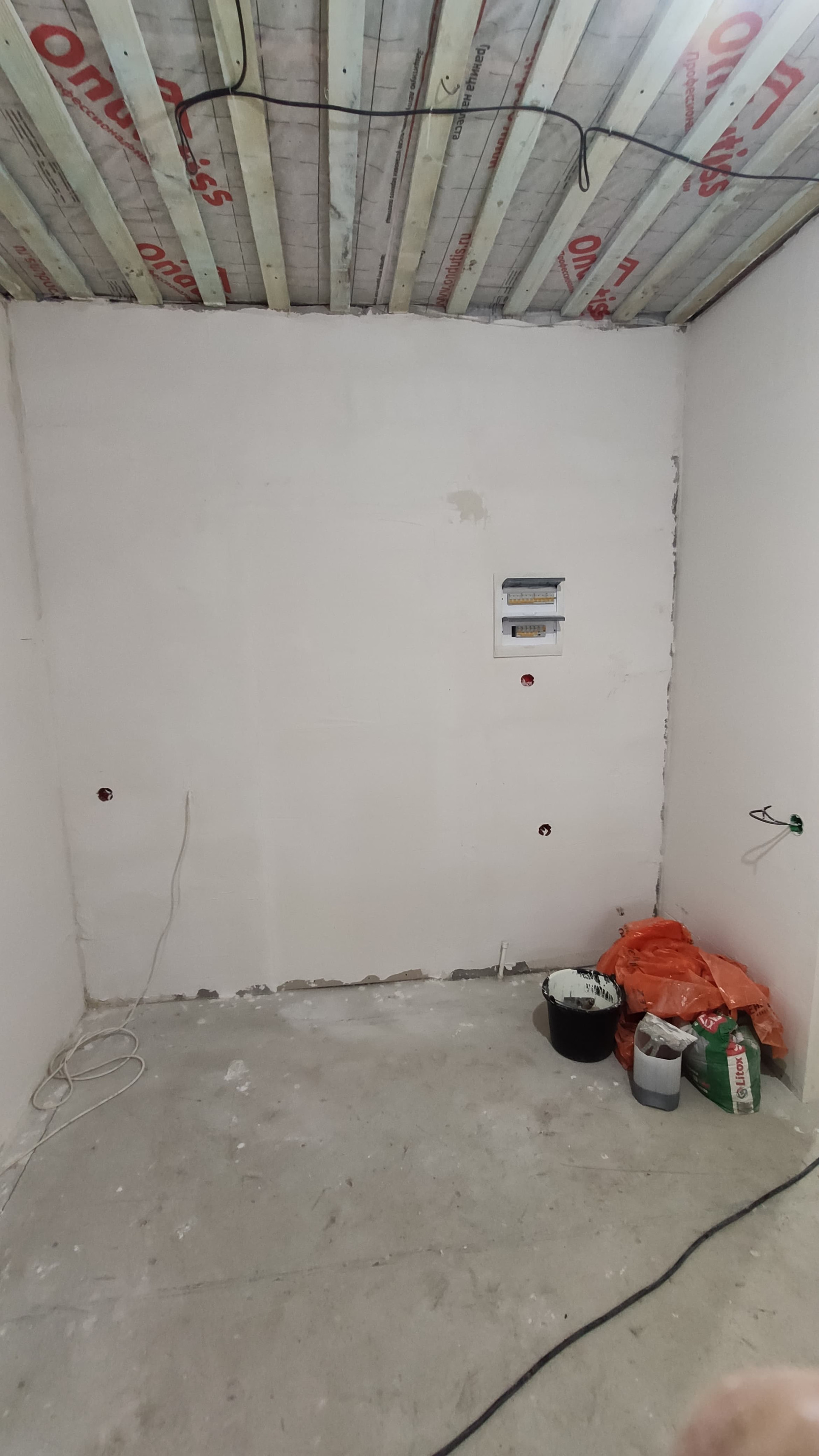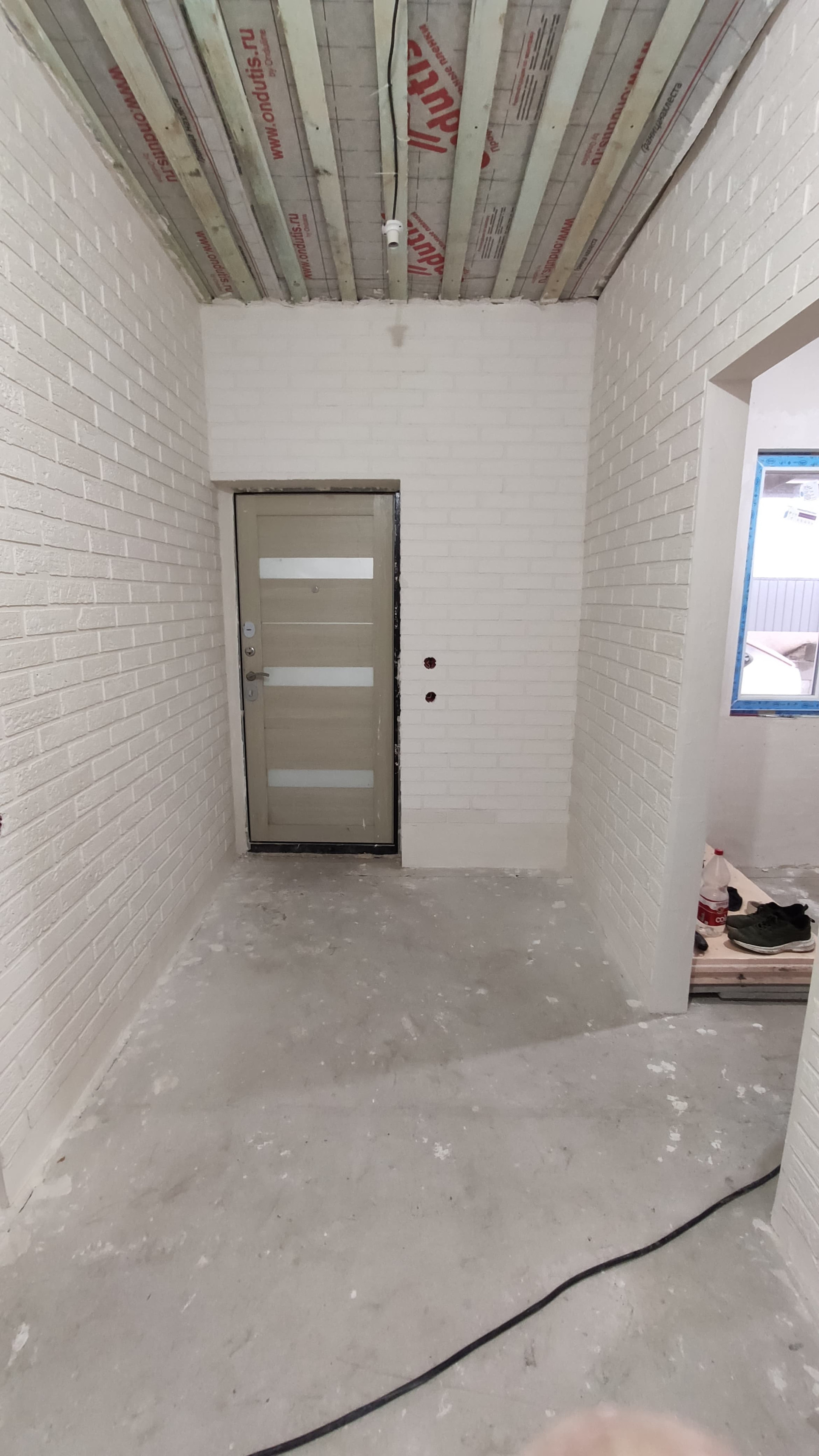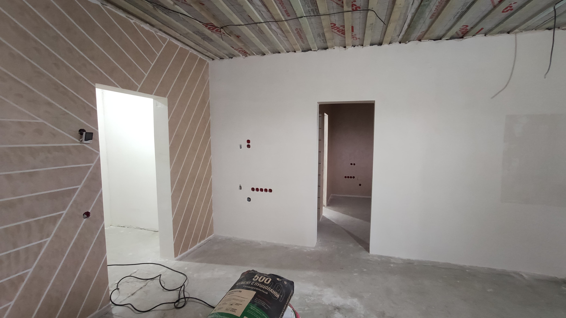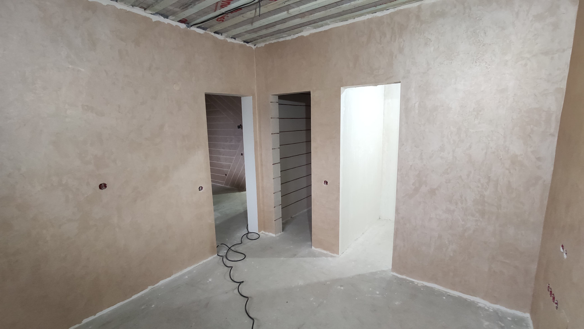 Во второй половине дома: в помещении № 7 выполнена черновая отделка, залит бетонный пол, в помещении № 8 отделка отсутствует.