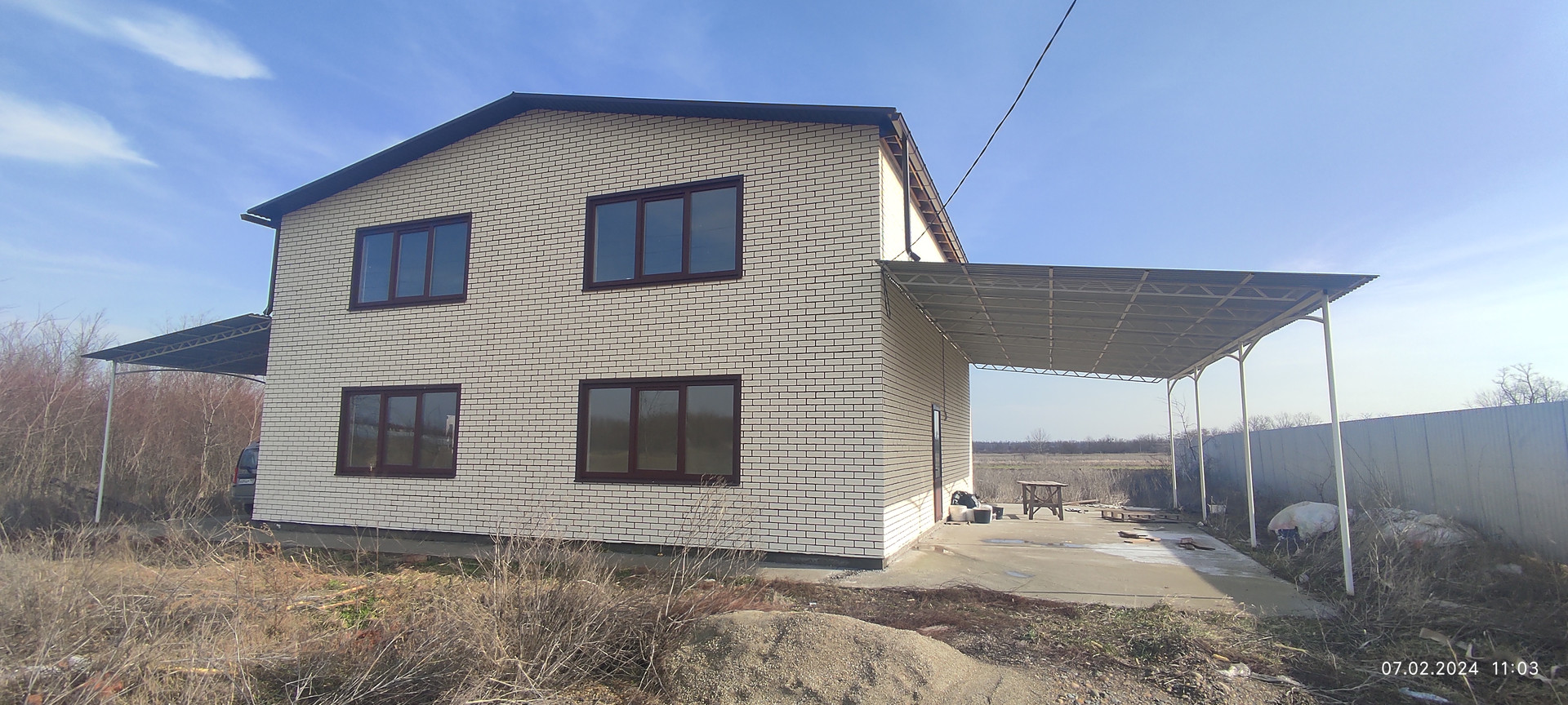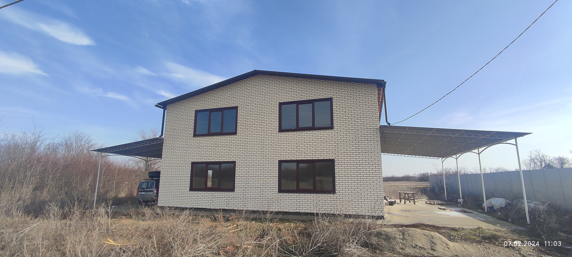 Новый жилой дом идеален для проживания двух семей: входы с разных сторон дома, зеркальное расположение комнат, в каждой половине на 1 этаже: комната 23 кв.м., кухня 16 кв.м., сан.узел, деревянная лестница; на 2 этаже: по две большие комнаты 23 кв.м. и 24,5 кв.м. Электрическое отопление, газ проходит по улице. Навесы с обеих сторон дома.