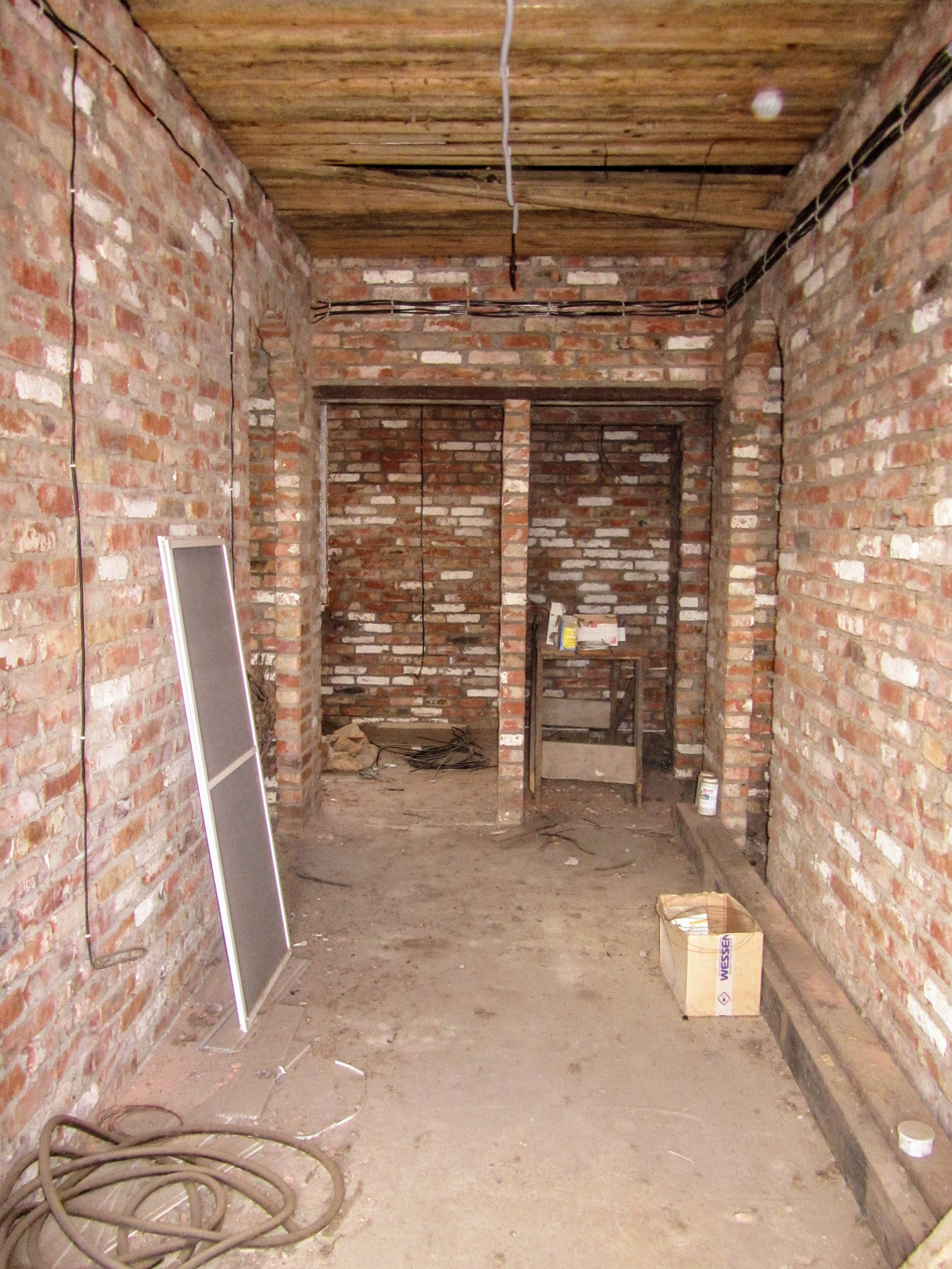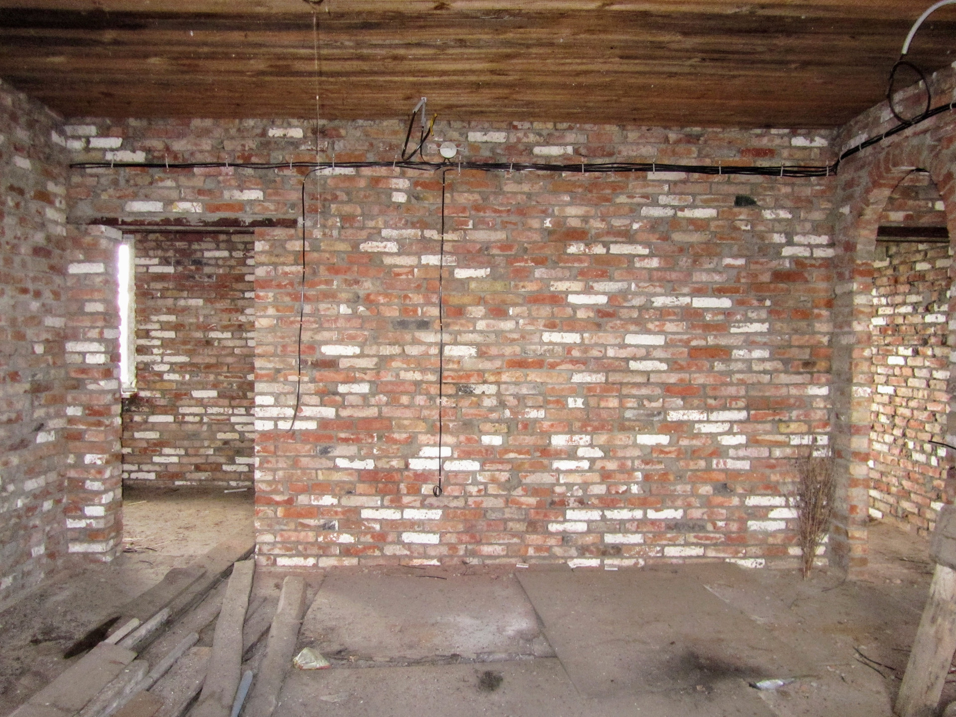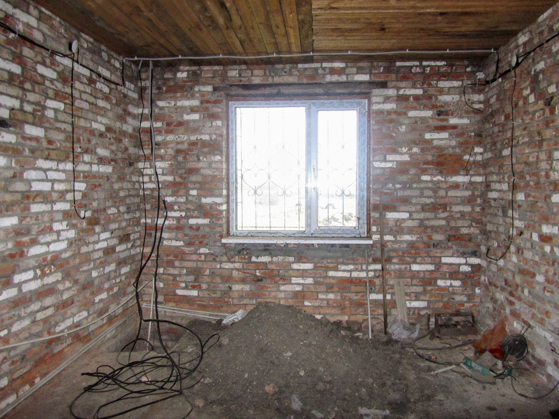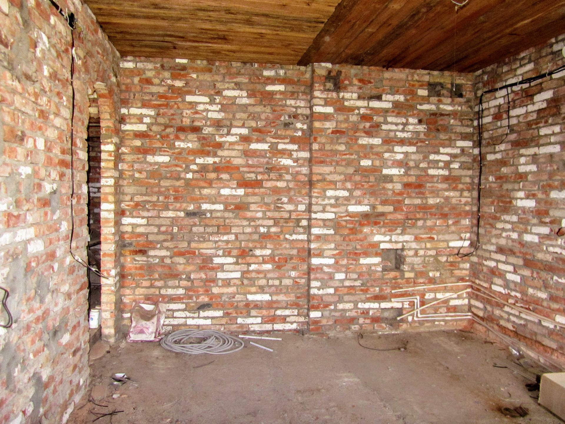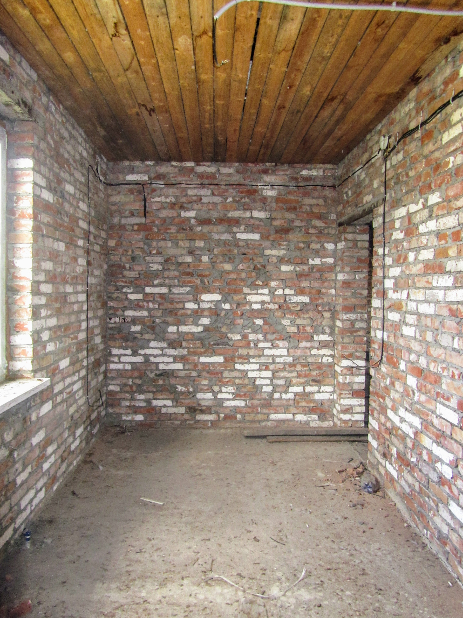 Состоит из трех комнат, смежно-раздельного расположения, кухни, раздельного с/у и коридора. Кирпичные стены, потолок - деревянные балки, пол - бетонная стяжка. Установлены металлопластиковые окна. В дом заведен свет, вода проходит во дворе, газ по улице. Входная дверь металлическая.