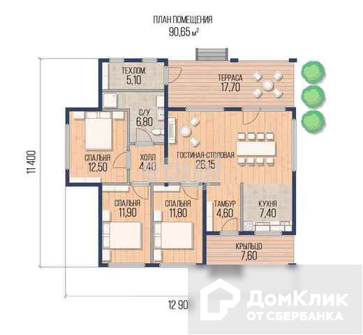 Общая площадь 90.65 м2