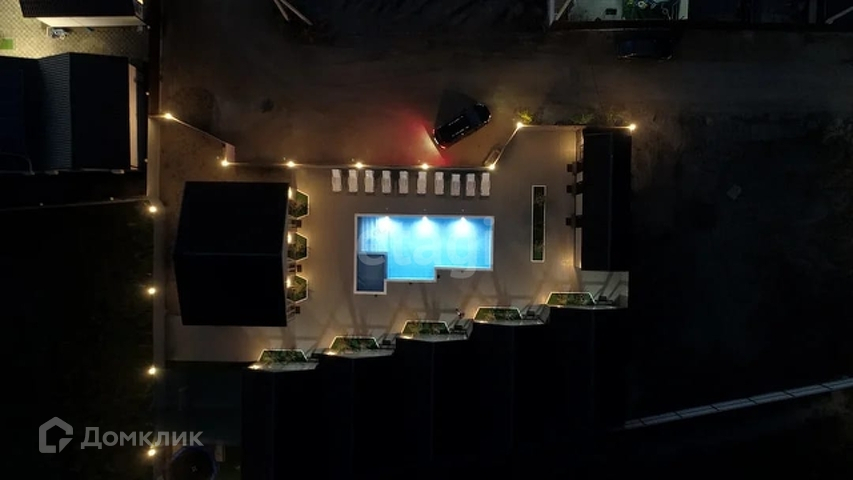 На территории большой стационарный бассейн с полной автоматикой и фильтрацией, деревянный настил, озеленение с капельным поливом.