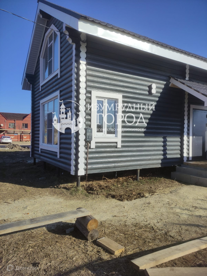 В Голубицкой  на 6-ти сотках ,  дом из бревна 20 мм. ИЖС.  В доме : прихожая, кухня-гостиная, сан.узел, 2 спальни.  Все коммуникации. Можно использовать под постоянное  проживание или под сдачу. Хороший подъезд с асфальтированной дороги. В пешей доступности - школа, магазины, ДК. До моря 1200 м.