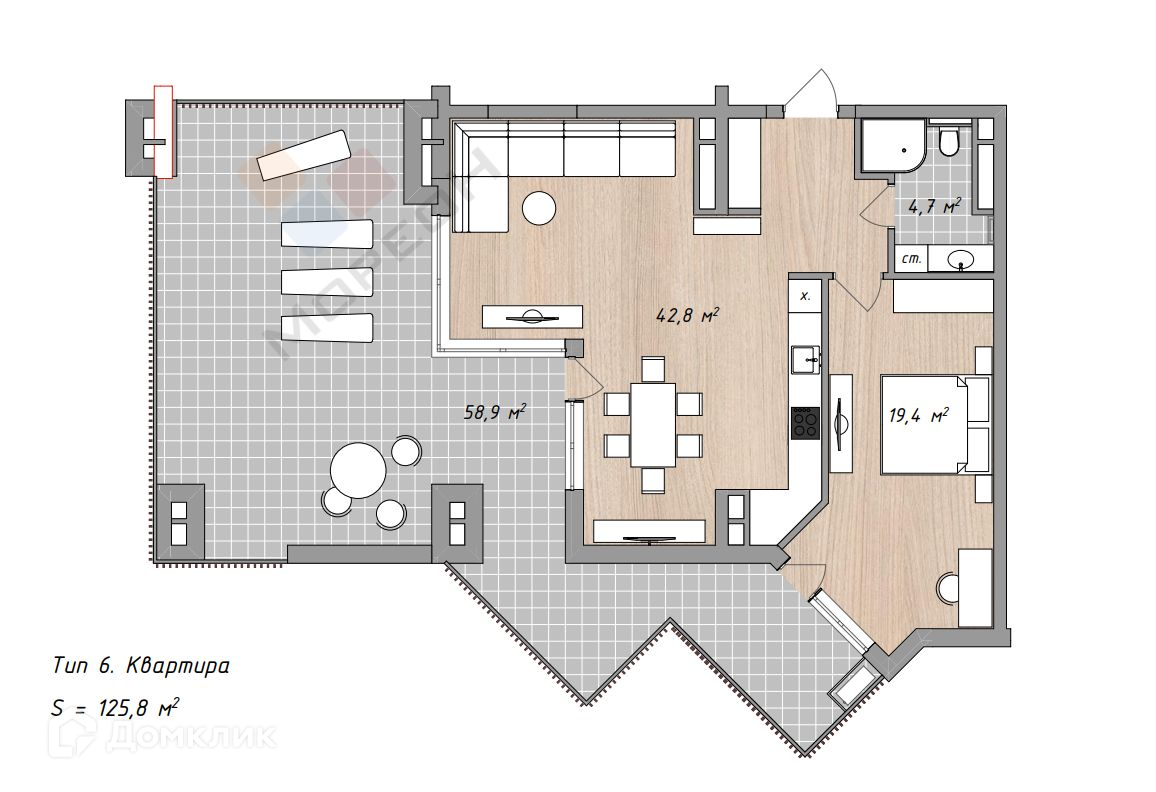 Общая площадь 125.8 м2