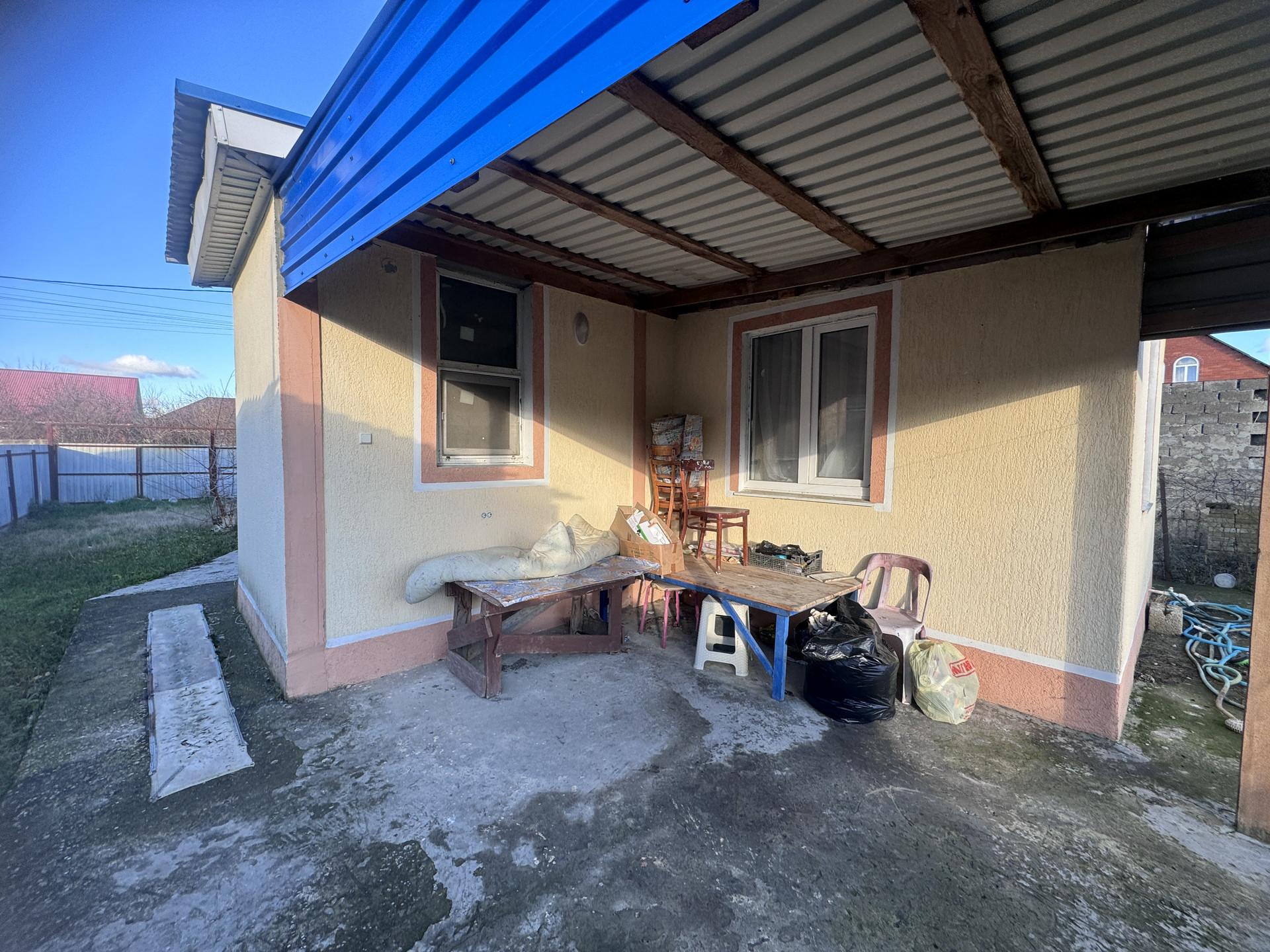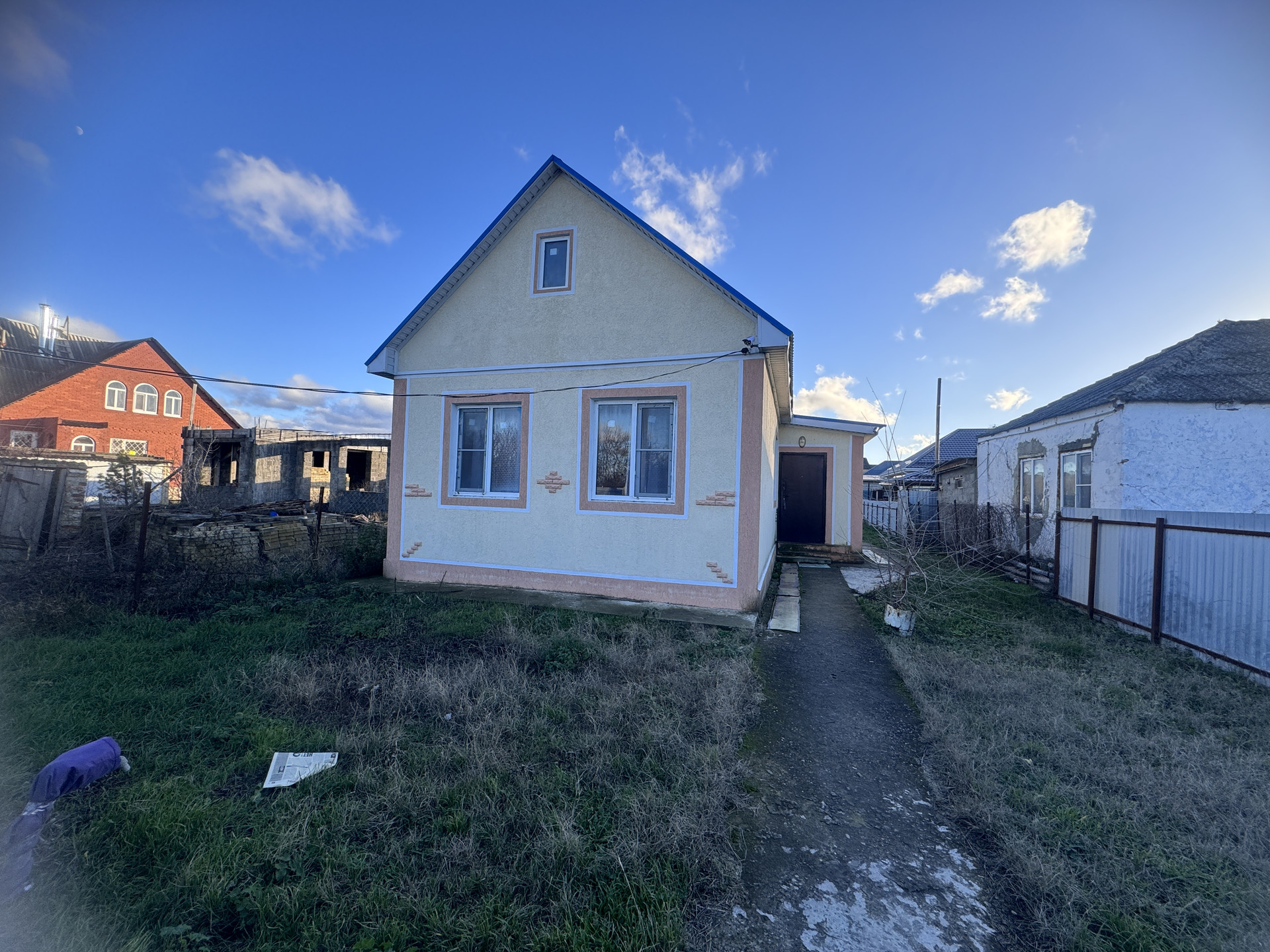 (ID - 41812) Продается уютный отдельно стоящий домик 2014 года постройки в пригороде Анапы станице Гостагаевской. 2 изолированные спальни, кухня-гостиная, навес, сарай, въезд для авто. Подключены центральные свет и вода, газ - подземка- по границе участка, канализация - септик. Отопление - батареи от электро-котла. Участок 5 соток, есть хоз.постройка. Дорога - щебенка, до асфальта 500 метров. До школы и садика 15-20 минут пешком. Рядом магазин, остановка общественного транспорта. В поселке развитая инфраструктура - есть больница, дом культуры, кафе, большой парк, 2 школы. До Анапы и моря 30 минут на общественном транспорте.