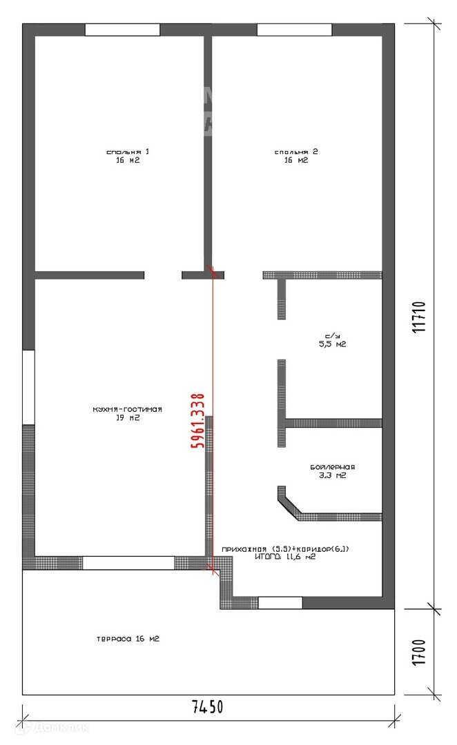 Общая площадь 92 м2