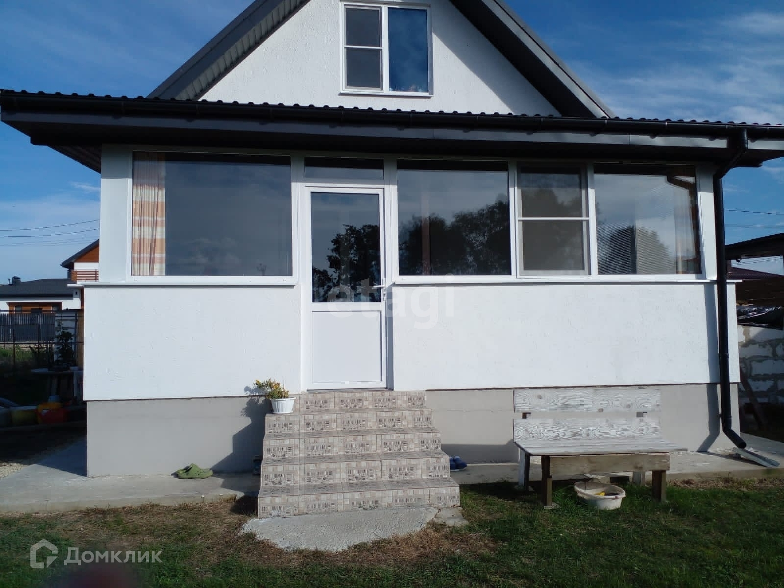 Общая площадь дома составляет 84.1 кв м, с комнатой в подкрышном пространстве. Расположен дом на земельном участке 4.7 сотки.