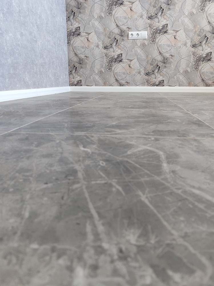 ✅ На полу крупноформатный керамогранит.