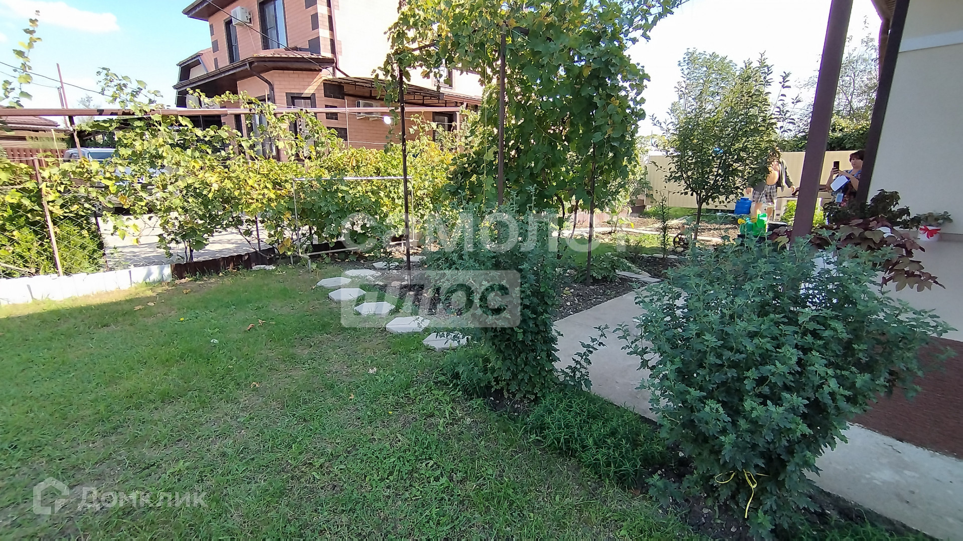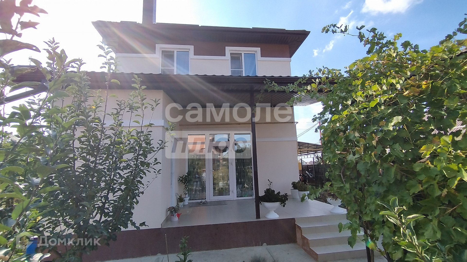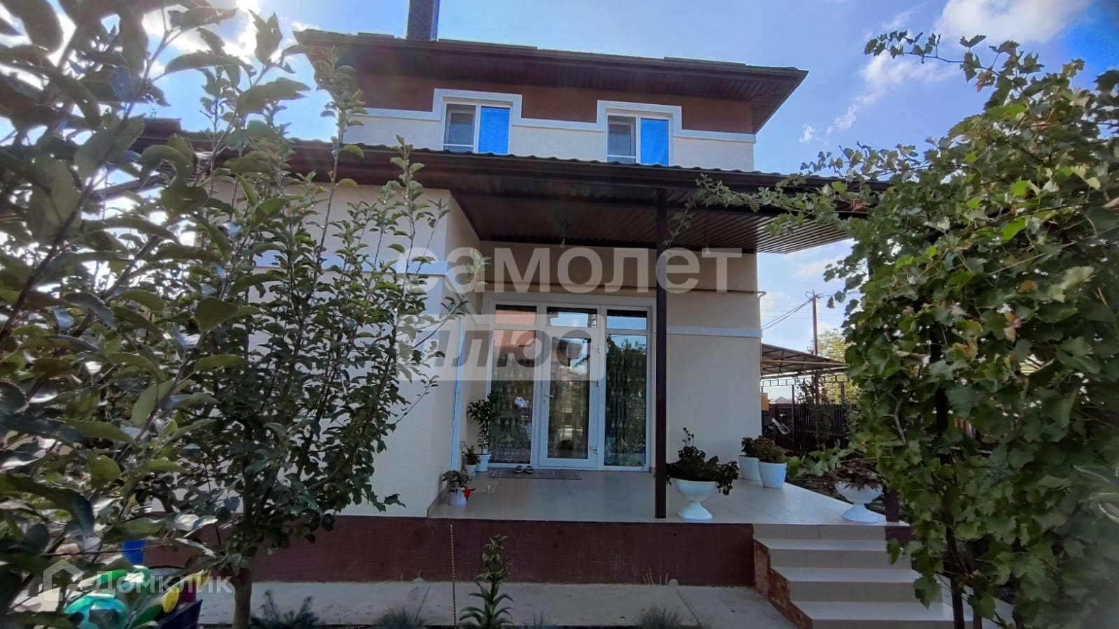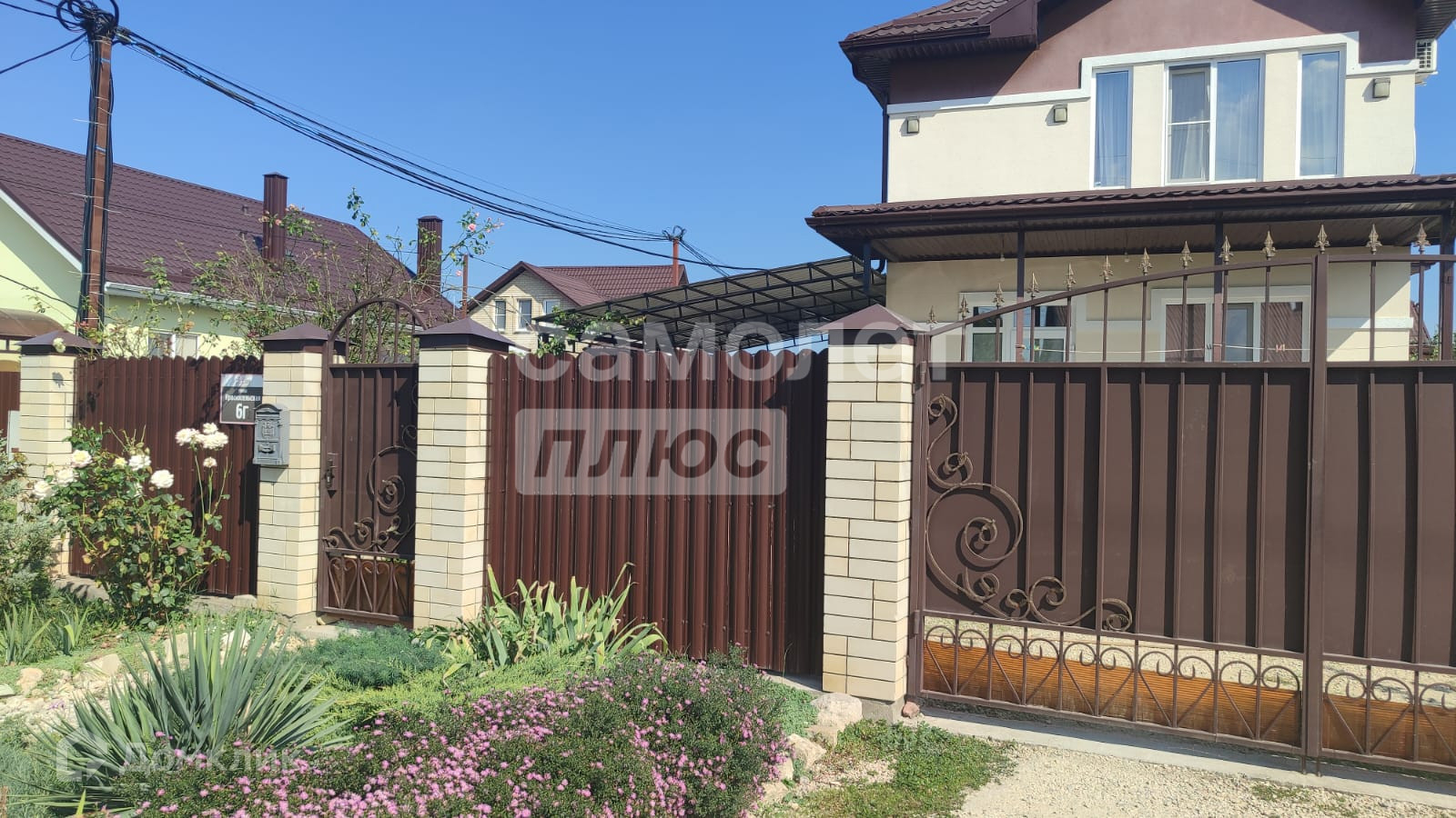 Он окружен участком в 4,7 соток, на котором расположен навес для двух автомобилей.