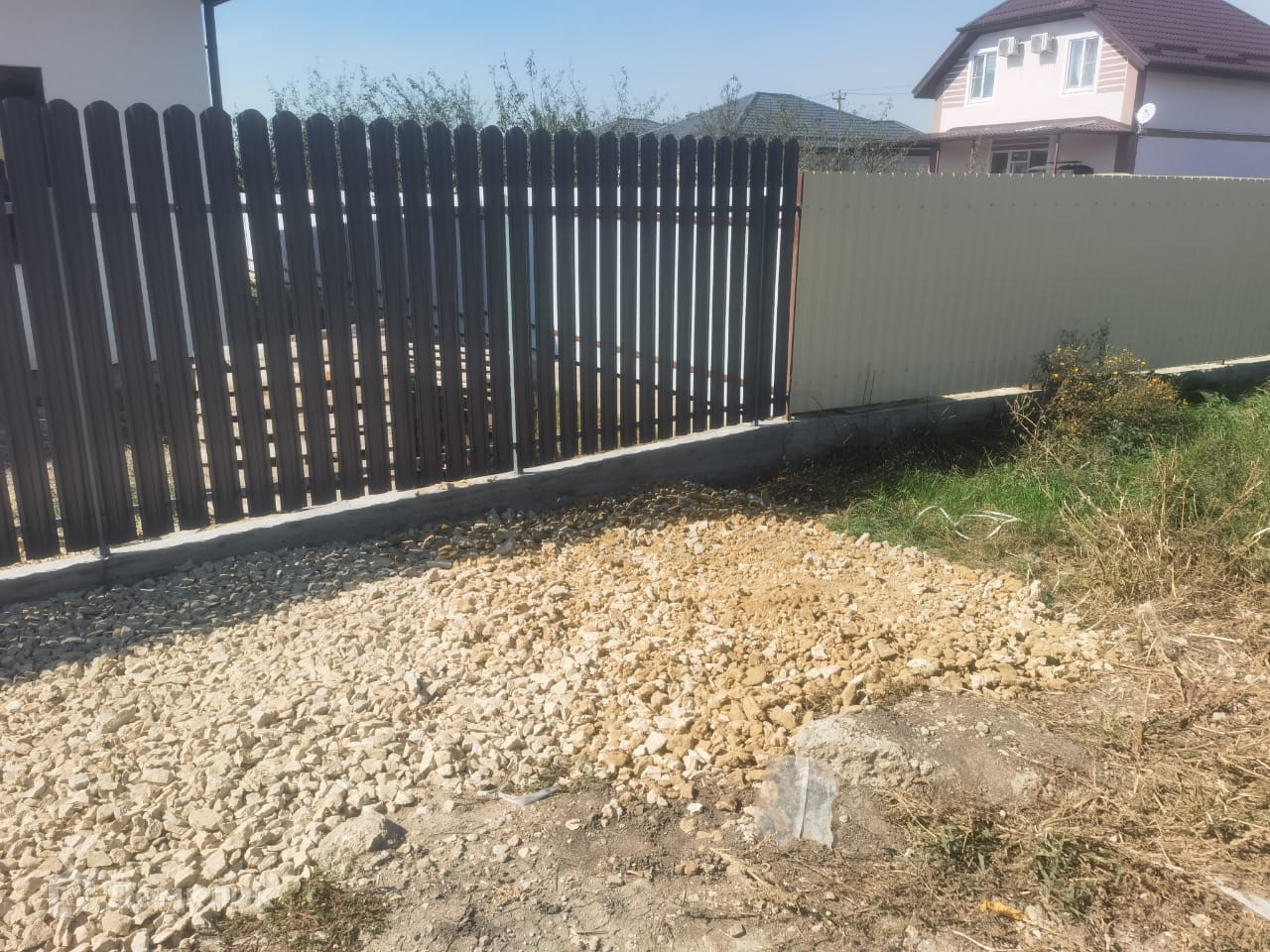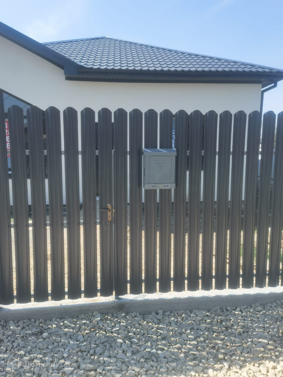 Территория участка по периметру  огорожена штакетником из металлопрофиля .