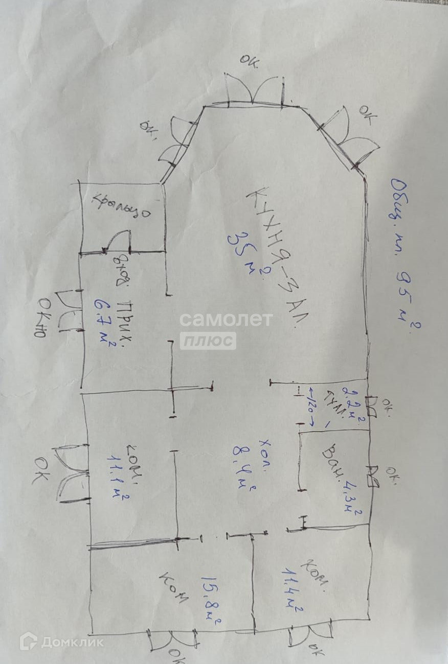Арт. 74950827 Дом площадью 93.5 м² на участке 5 сот, правильной формы.