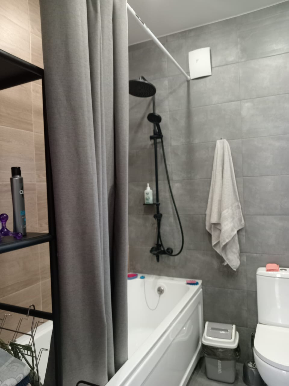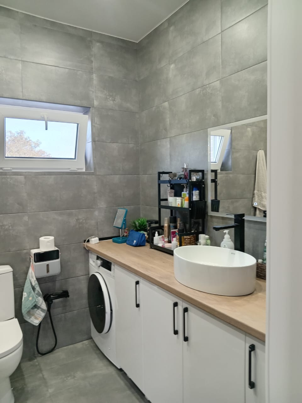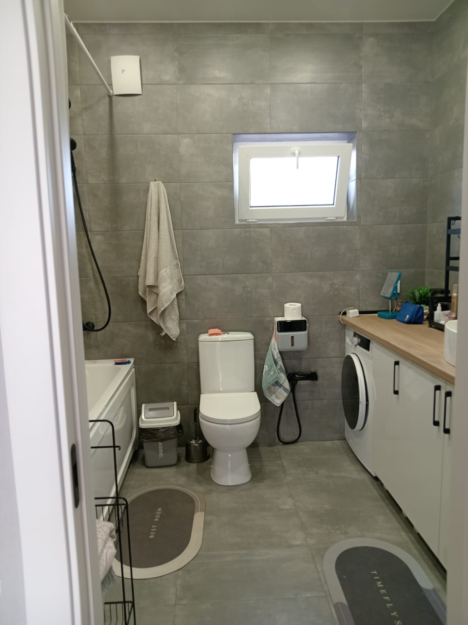 В ванной комнате оборудована - стиральная машинка, гигиенический душ, встроенная мебель для ванной комнаты.