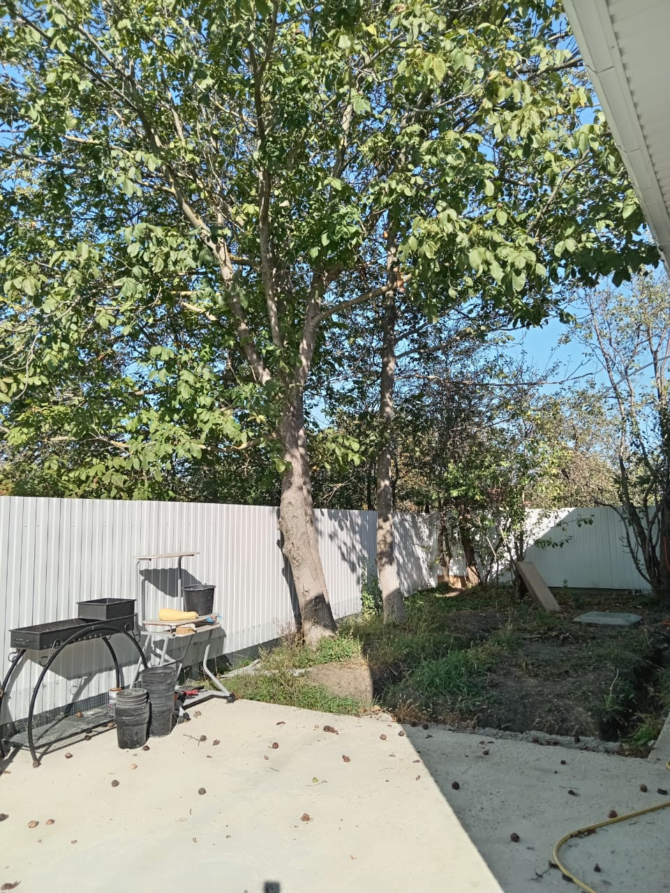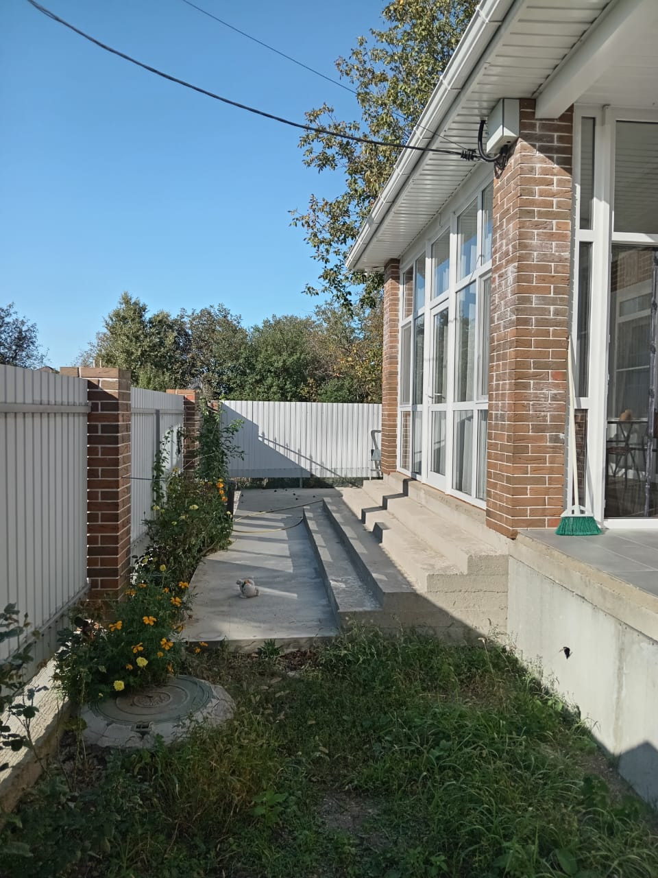 Дом расположен на земельном участке 5 соток, на участке высажен молодой сад (абрикос, яблони, груши, вишня, черешня, инжир, фенхуа, киви, плодовые кустарники), посажены розы. Есть и взрослые плодоносящие деревья - слива, яблоня, грецкий орех.