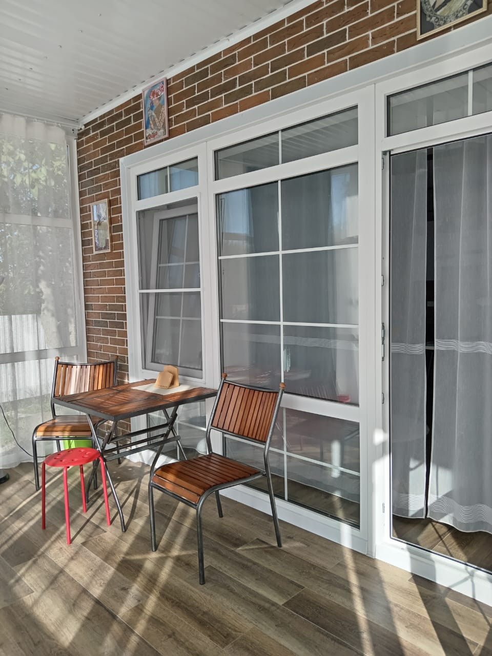 В доме две террасы - одна застеклена, другая открытая.