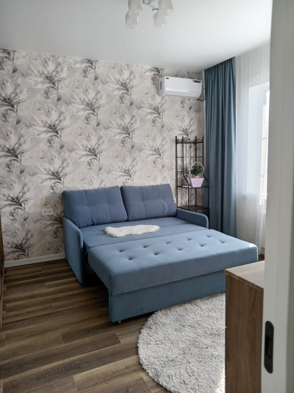 В гостевой комнате остается новый раскладной диван, шкаф-купе, большой комод.