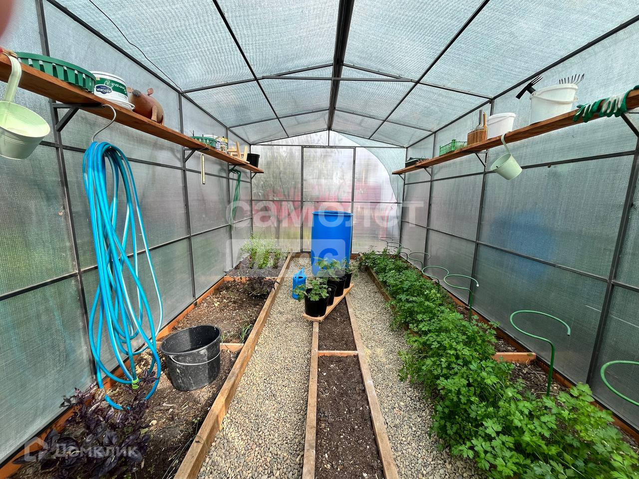 Участок облагорожен, есть плодовые деревья и кустарники(персики,разного срока созревания,вишни крупноплодные,черешни,яблони,груши,абрикос,хурма,малина, ежевика, крыжовник,смородина), множество сортов винограда, а также есть теплица!