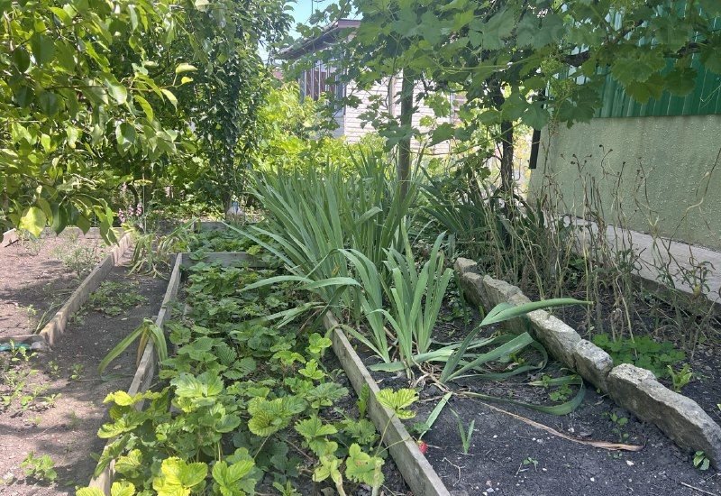 • ухоженный плодоносящий сад, посажены груши, яблони, ежевика, виноград, розы и др.