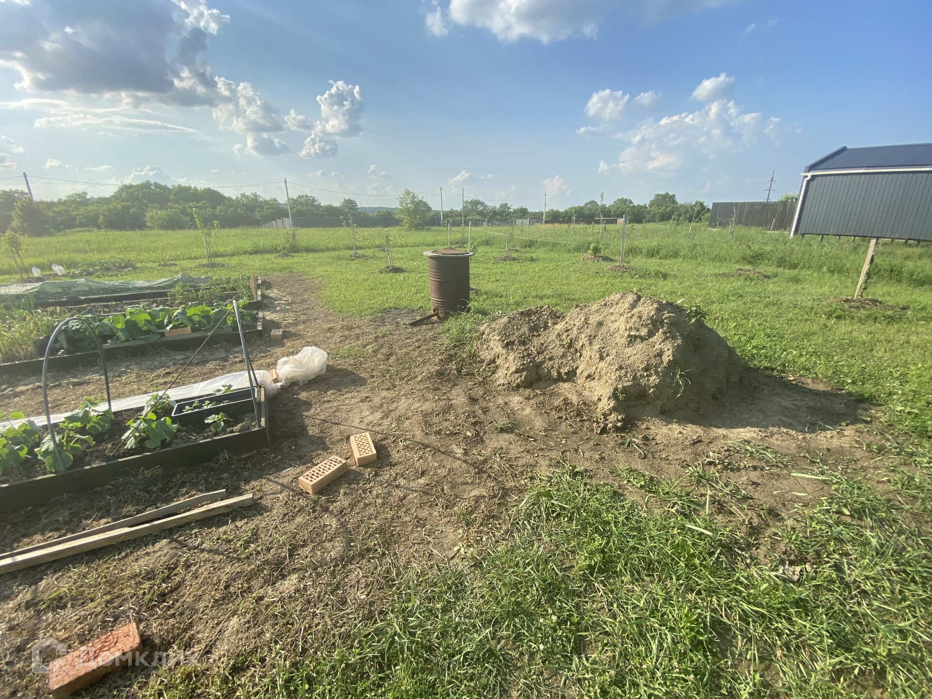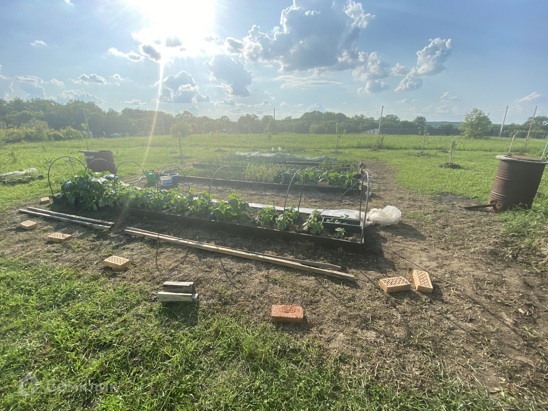 Земельный участок правильной формы, ровный. Площадь 7.5 соток. На участке много молодых плодовых деревьев.