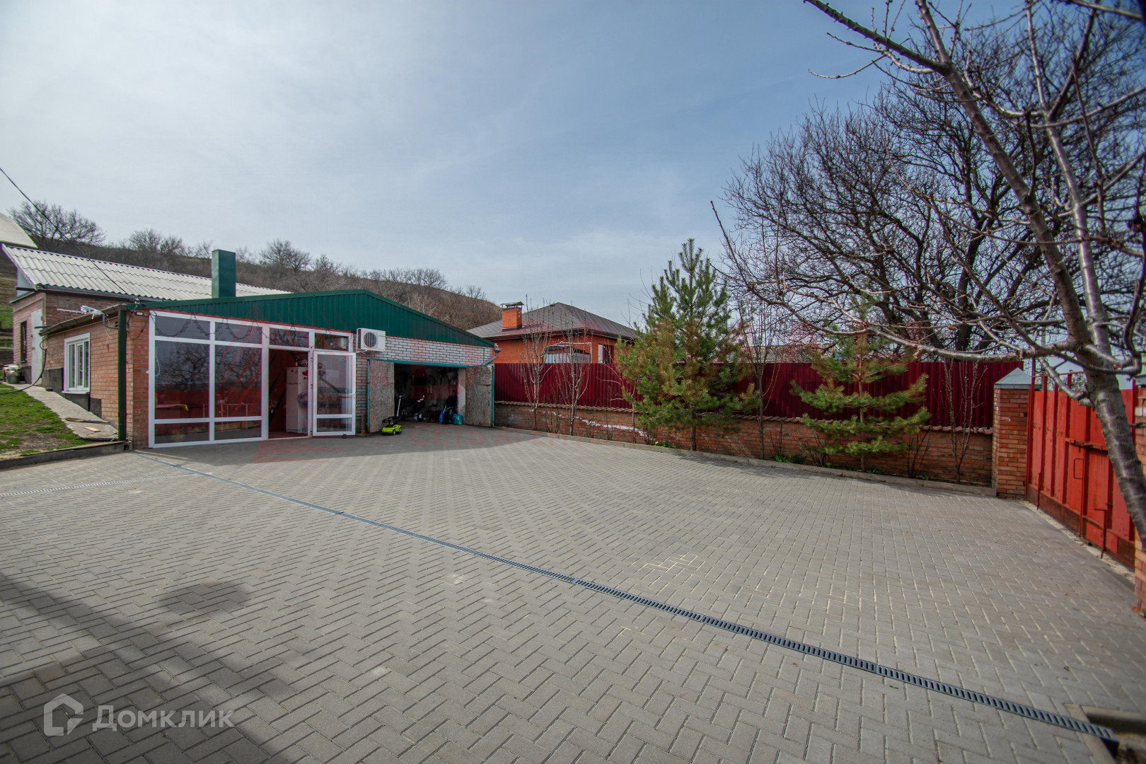 Просторный двор с плодовыми и хвойными деревьями.Два гаража ,подвал,летняя беседка с камином.
