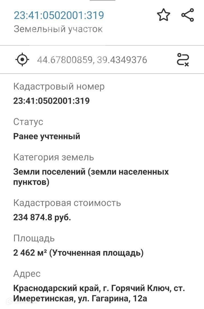 Представляю Вашему вниманию земельный участок площадь которого составляет 24,62 сотки, по факту величина участка составляет 30 соток. На неучтенную по документам площадь, ни администрация, ни соседи не претендуют. Длина по фасаду 60 м. , Глубина участка 50 м. На участке имеется одноэтажное , ветхое строение, которое идет под снос. Располагается данный участок в ст. Имеретинская в окружении лесов, а следовательно воздух здесь чистейший. Тут Вам и охота, тут Вам и рыбалка, множество видов грибов в лесу. Из коммуникаций есть только электричество, но, согласно госпрограмме Краснодарского края " Развитие топливно - энергетического комплекса " газификация в ст. Имеретинская должна быть реализована до 2026 - го года. Звоните и записывайтесь на показ предварительно.