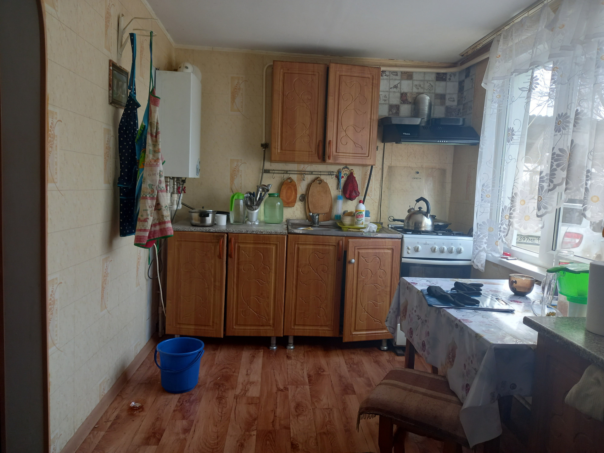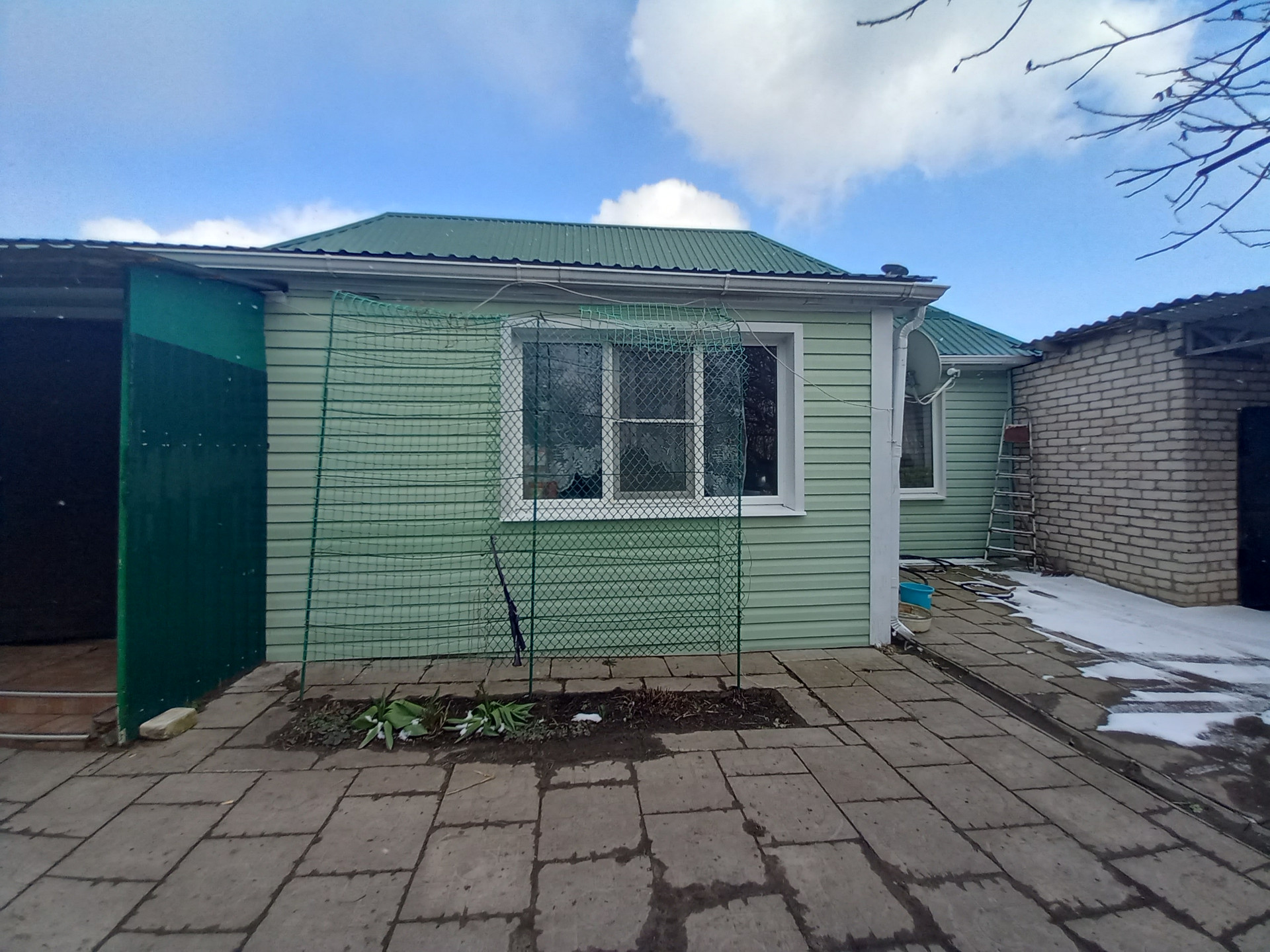 Турлучный дом , обложен кирпичом , обшит сайдингом, 2003 года , пристройка 2016 года.Все коммуникации. Счетчики на все. В доме четыре комнаты: три спальные и  просторный зал, кладовая комната, с/у раздельный, кухня и коридор. Свежий ремонт. Заменена вся отопительная система , новые батареи. Сплит -система. Окна металлопластиковые. Дверь железная. При входе навес. Во дворе  беседка, гараж с ямой. Так же с капитальным навесном при выходе. Их хоз. построек: сараи, уличный кирпичный с/у. Земельный участок 32 сотки с разными фруктовыми деревьями и кустарниками. Ухоженный огород ,выходящий к реке. Двор вымощен плиткой. Забор метало-профильный . В станице есть школа, дет. сад, поликлиника, администрация, магазины различных групп товаров, так же  зона отдыха у с беседками у реки. До города Тихорецка 19 км. Автобусное сообщение налажено.