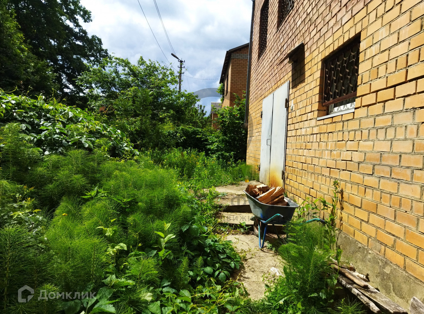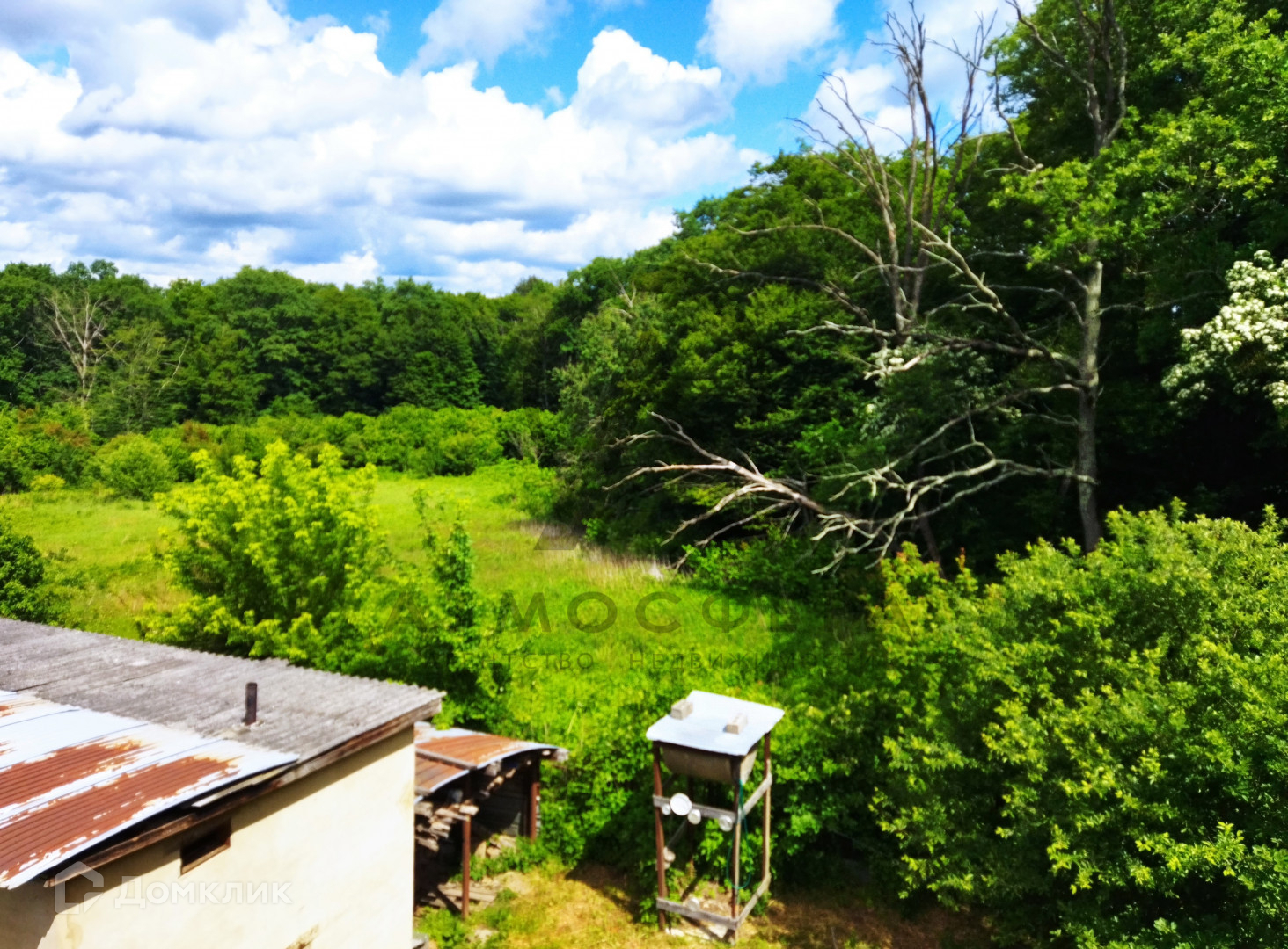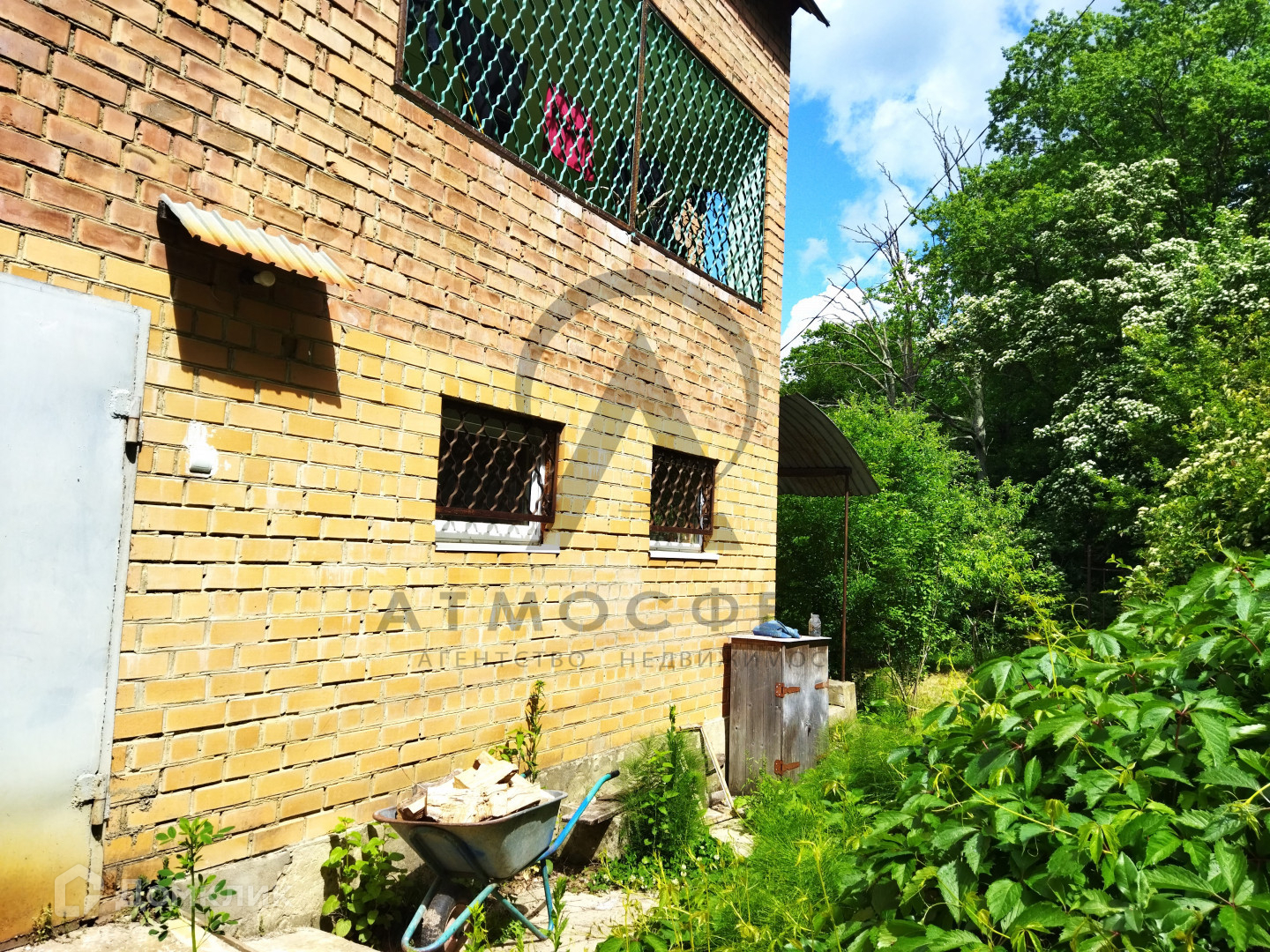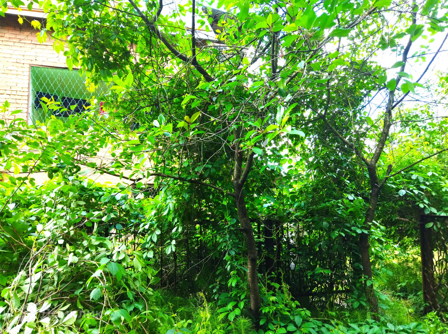 Участок площадью 15 соток граничит с лесом, имеет огород, дровяник, летний душ и бассейн. Также на территории присутствуют все необходимые надворные постройки: навес, сеновал, курятник, баня и гараж.