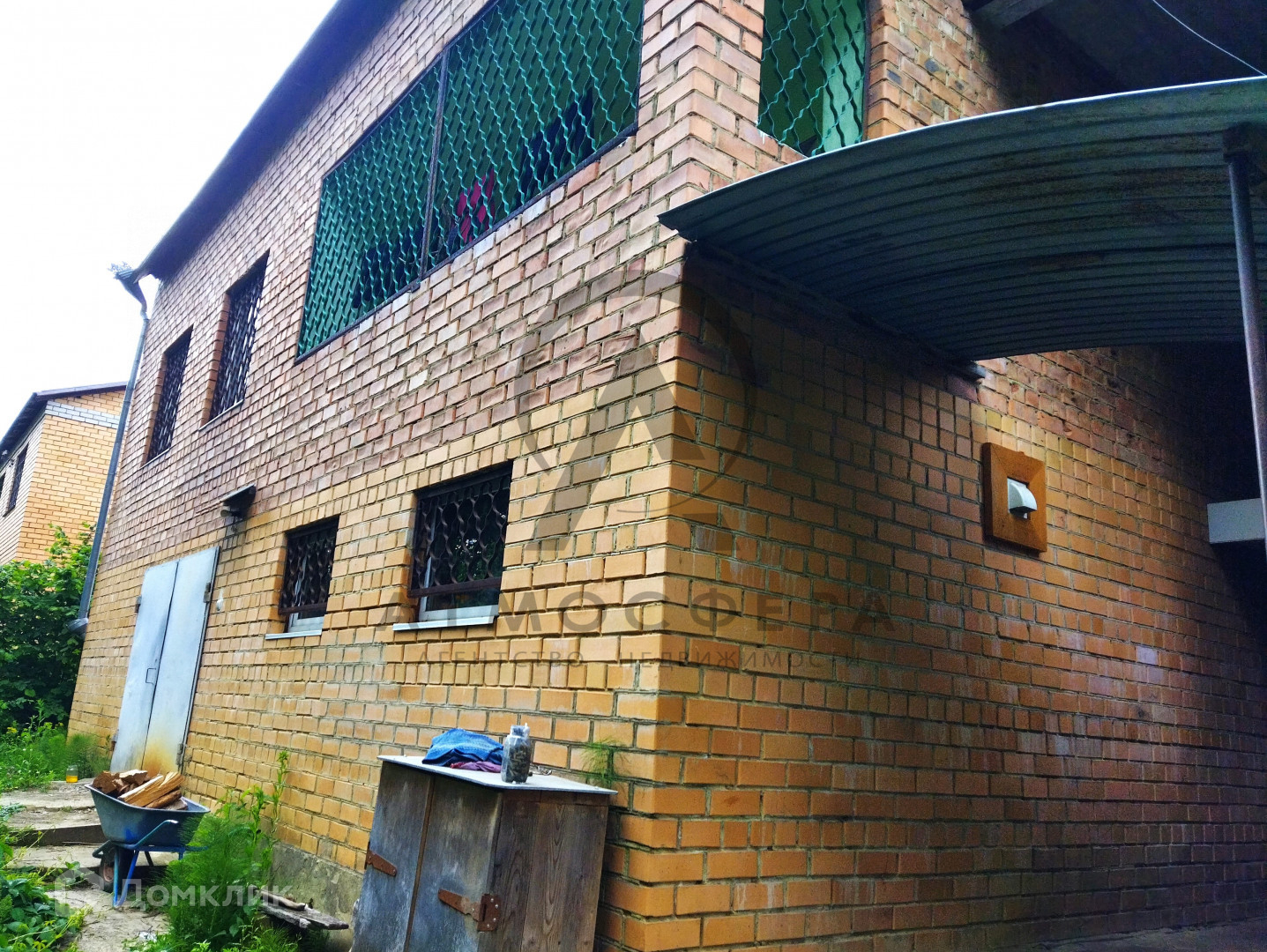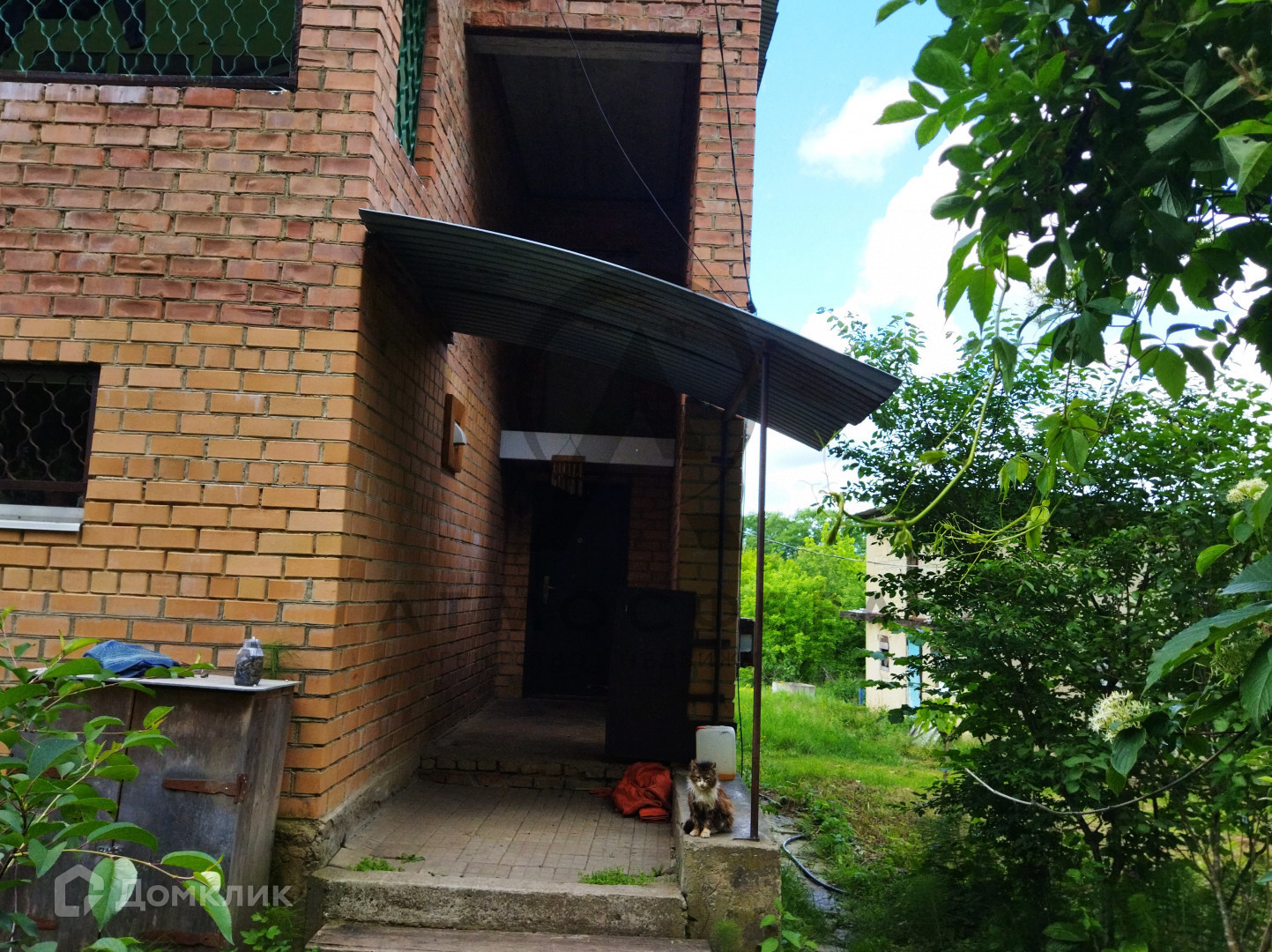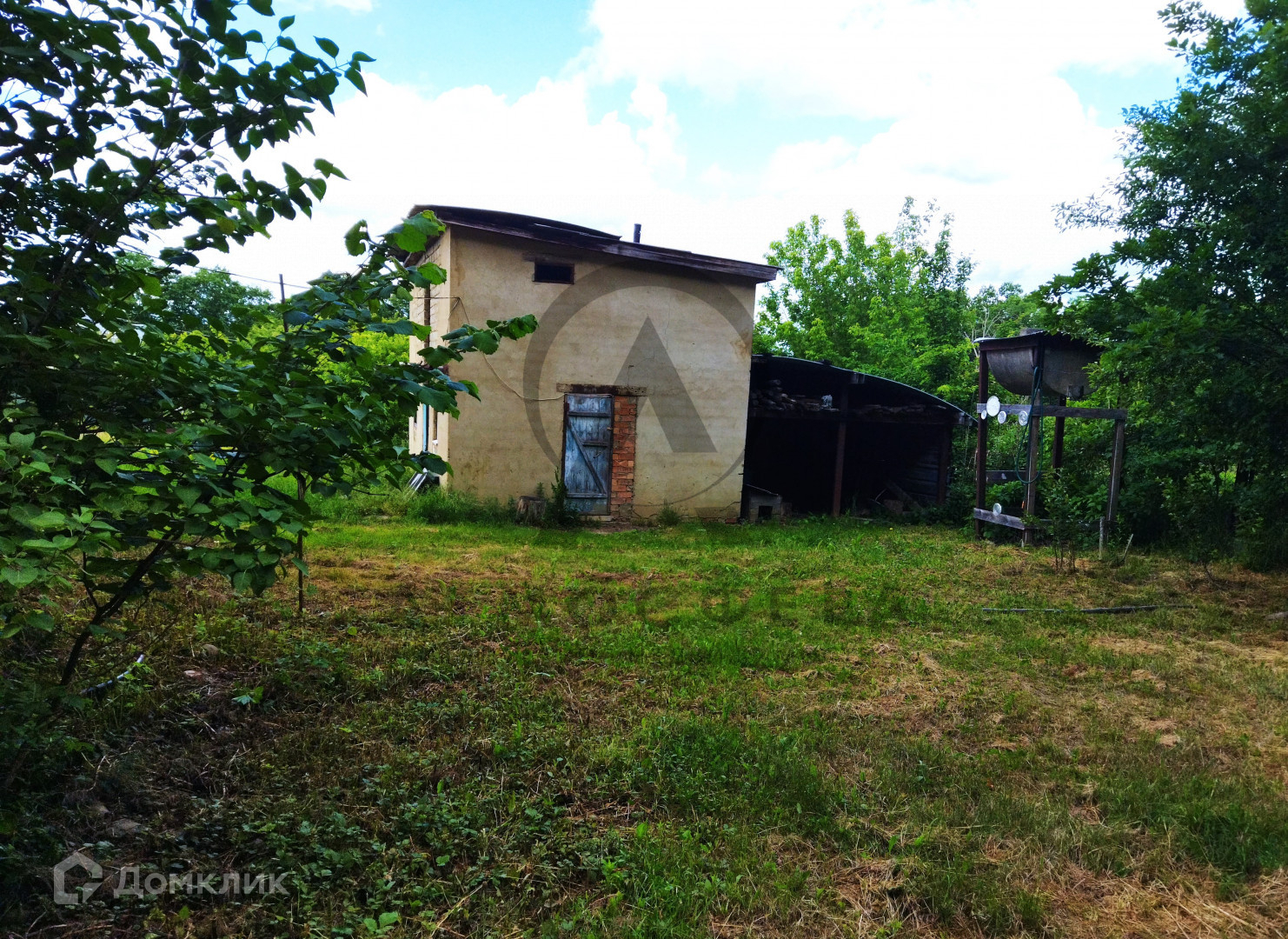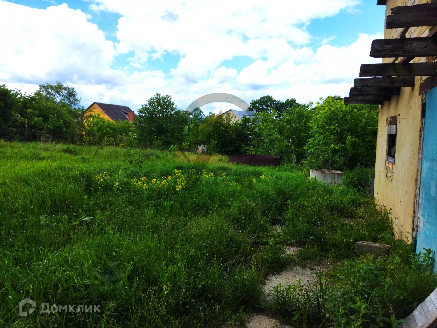Участок площадью 15 соток граничит с лесом, имеет огород, дровяник, летний душ и бассейн. Также на территории присутствуют все необходимые надворные постройки: навес, сеновал, курятник, баня и гараж.