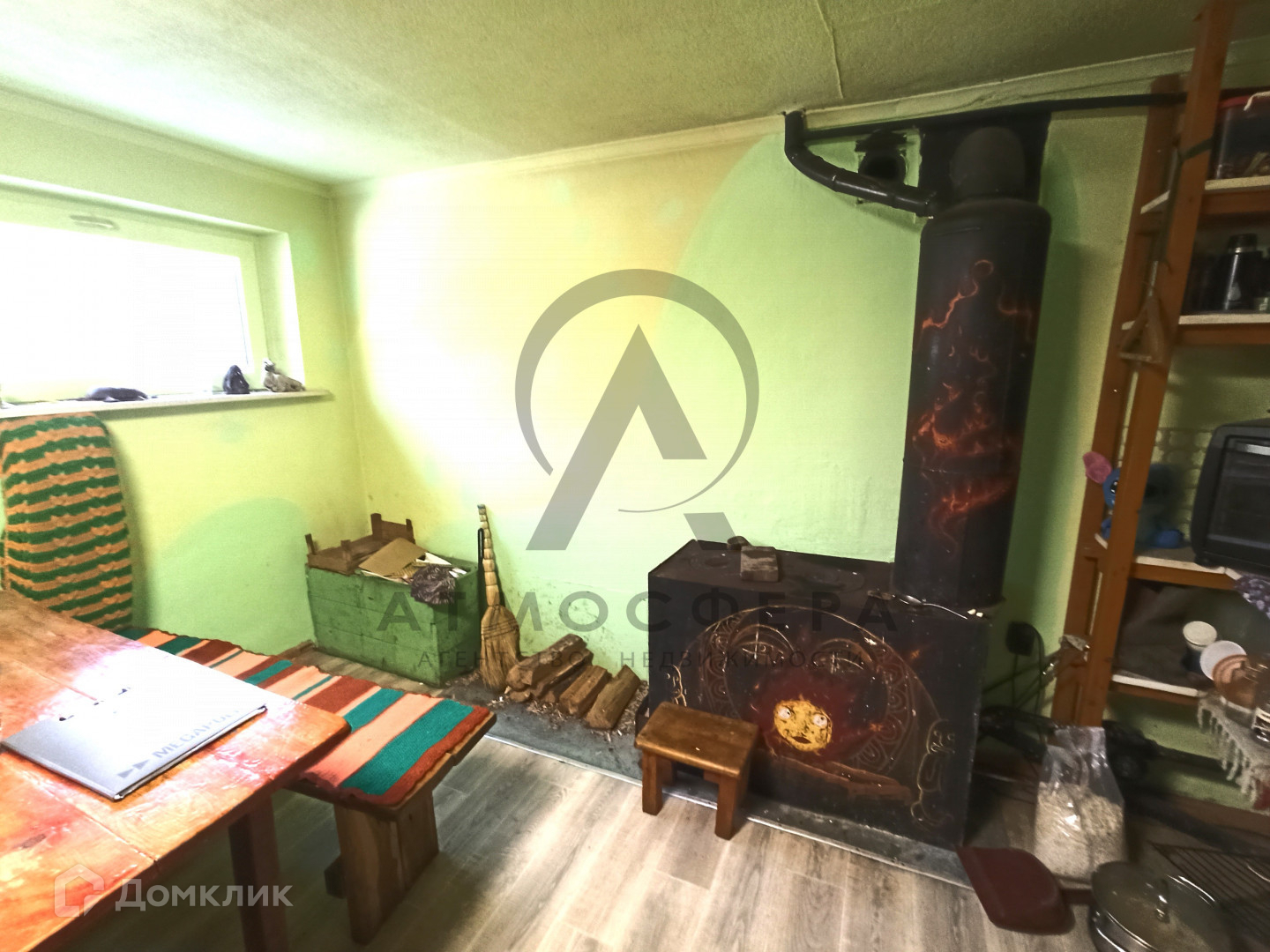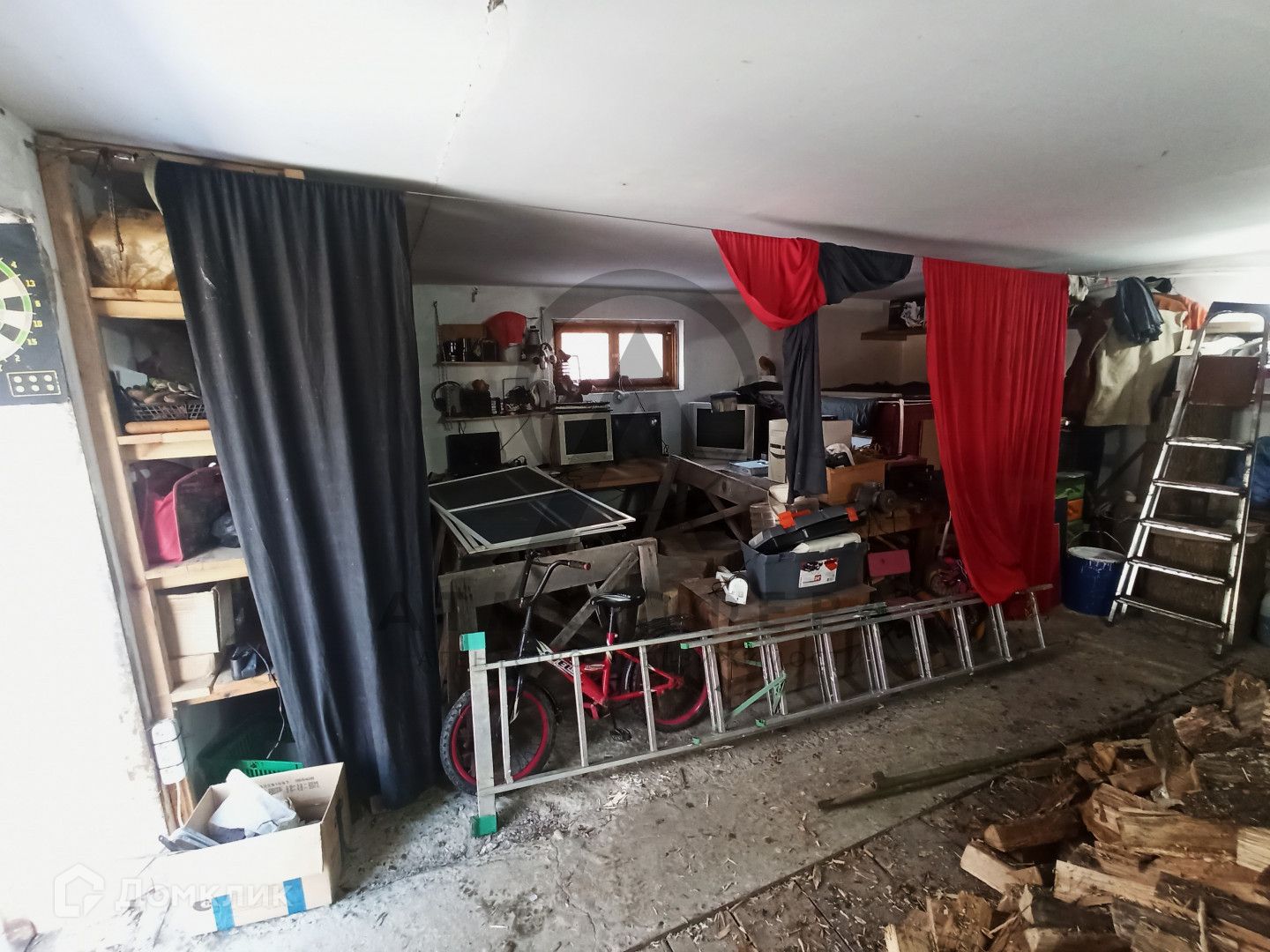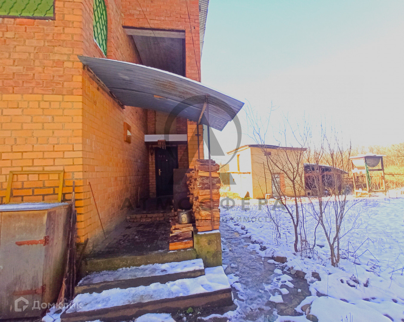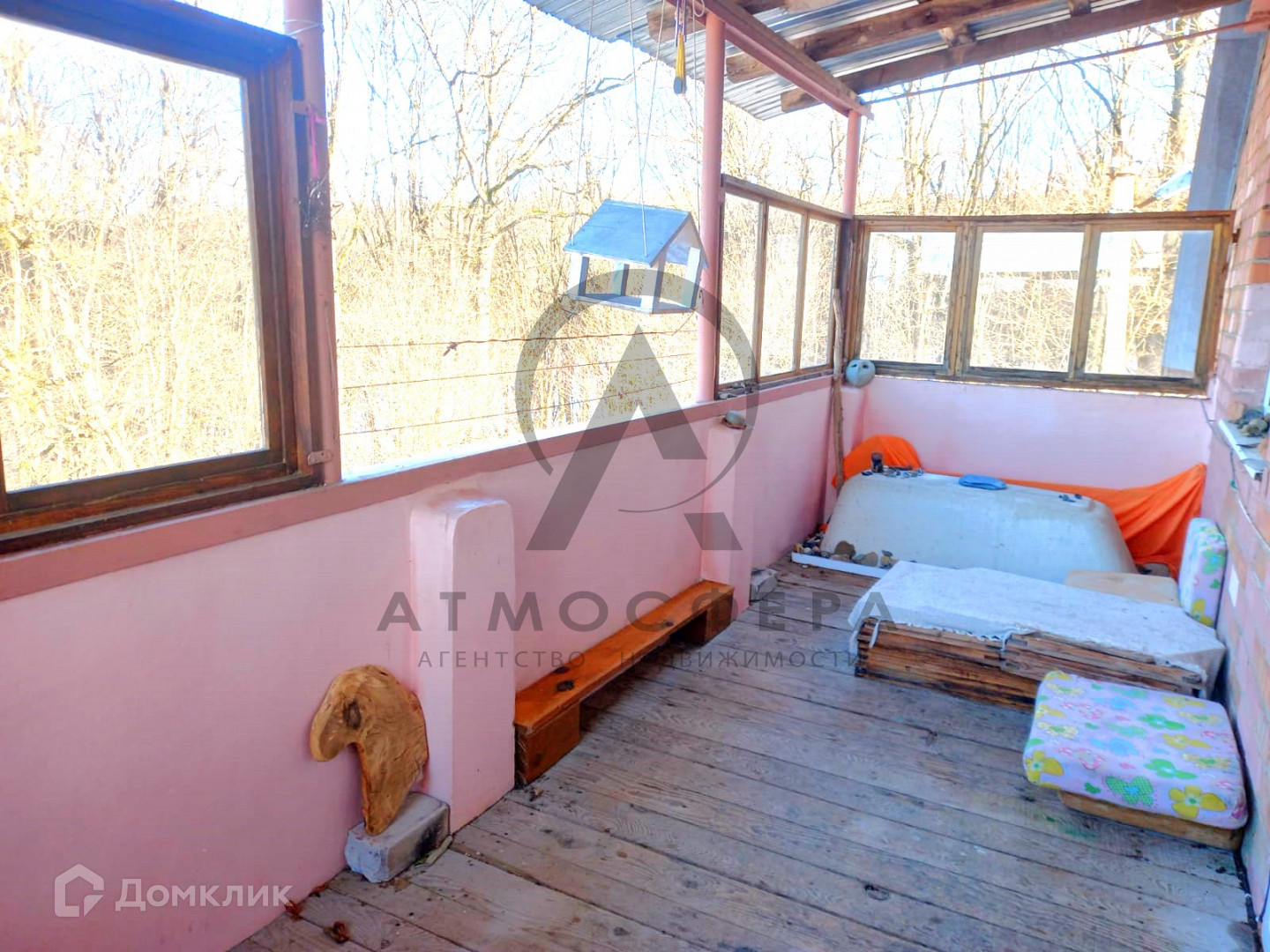 Участок площадью 15 соток граничит с лесом, имеет огород, дровяник, летний душ и бассейн. Также на территории присутствуют все необходимые надворные постройки: навес, сеновал, курятник, баня и гараж.