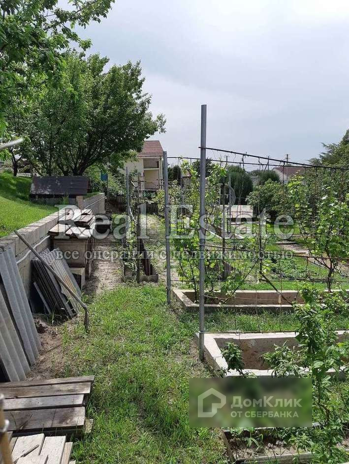 На участке: участок верандами, выровнен по горизонту, плодородная земля. Площадь 4000 м2.(40 сот). Много сортов винограда, плодоносящие деревья яблони, абрикосы, персики, черешня, калина и много всего. Есть грядочки под огородничество. Площадь распределена очень эргономично для всего.