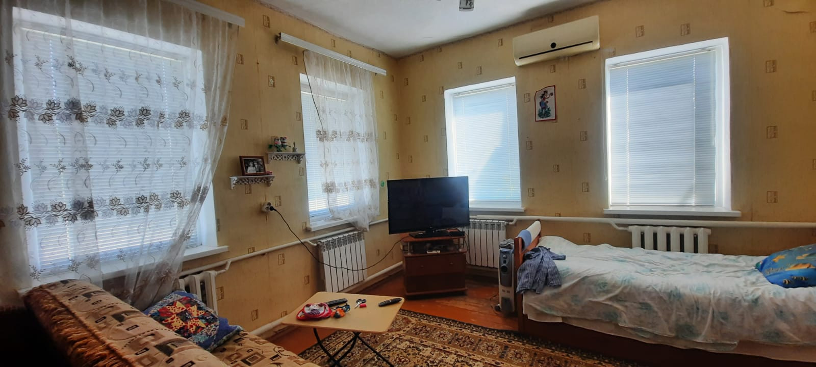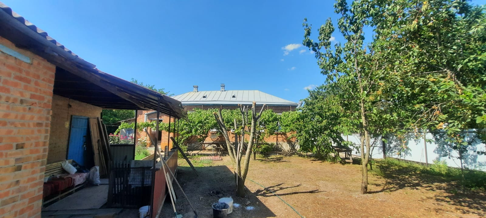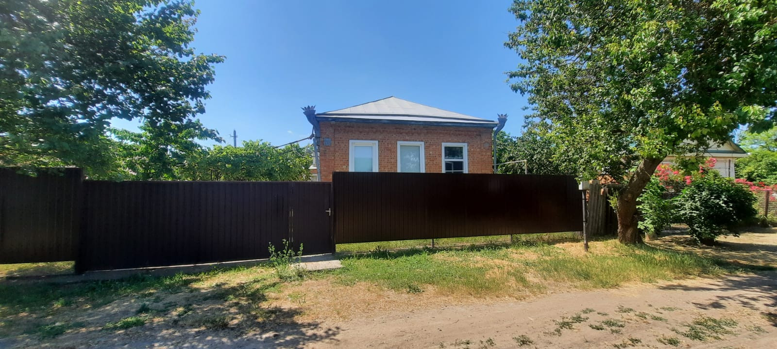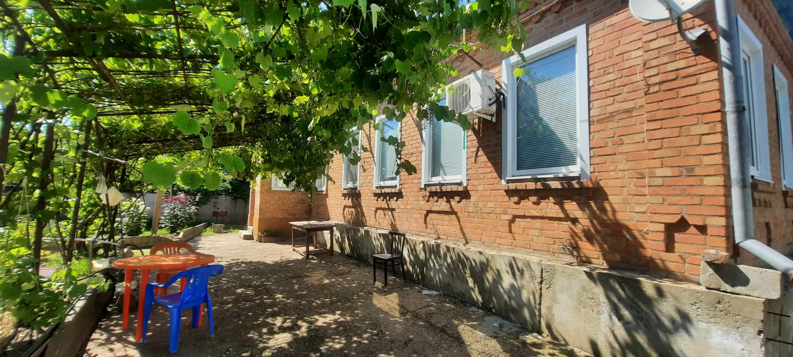 АН ЮГ представляет вашему вниманию к продаже кирпичное домовладение на высоком фундаменте кровля - металлопрофиль. Состоит из четырех жилых комнат, смежно-раздельного расположения, кухни, с/у, коридоров и тамбура. На стенах обои нейтрального цвета, потолки окрашены водоэмульсионной краской, в одной из комнат - натяжной, полы - дощатые. На кухне стены оклеены обоями, потолок окрашен водоэмульсионной краской, пол застелен линолеумом. С/у совмещен, облицована плиткой. Установлены металлопластиковые окна. Счетчики на все коммуникации (на электроэнергию двухтарифный). Сплит-система. Стационарный телефон. Спутниковое ТВ. Интернет. Отопление - навесной двухконтурный газовый котел. Входные двери - металлическая. Перед входом в дом построен навес. Канализация - септик. Из хоз.построек: летняя кухня, гараж свободного функционала, сарай, колонка для полива. Перед домом по конструкции из металлических прутьев вьется виноградник, тем самым создавая теневые зоны отдыха. Ухоженный земельный участок, с множеством фруктовых деревьев и кустарников. Металлопрофильный забор. За двором есть место для стоянки автомобилей. Инфраструктура района развита, в шаговой доступности магазины различных групп товаров,детский сад, школа, аптеки, детская площадка, библиотека, почта, одним словом, есть все для комфортной жизни.