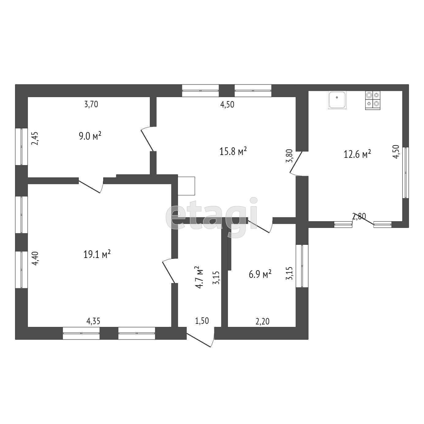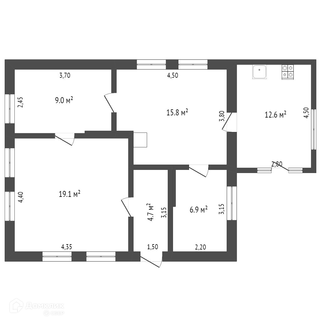 Дом общей площадью 68,1 кв м., жилая – 50,8 кв м. В доме три жилые комнаты и кладовка. Комнаты раздельно-смежные. Санузел совмещенный. В доме сделан косметический ремонт.