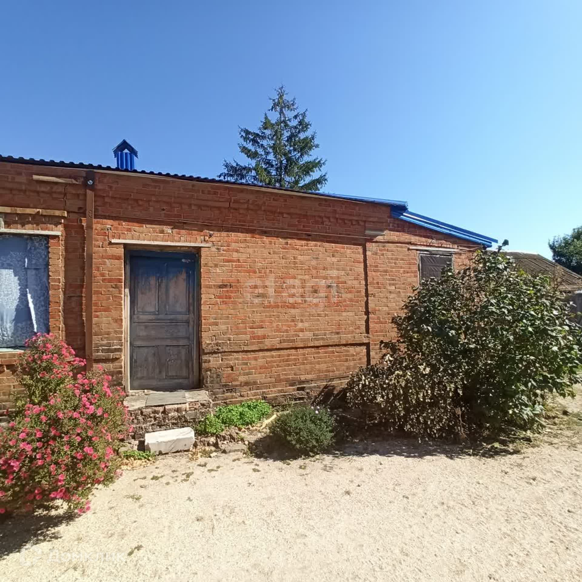 Материал стен - саман, облицован кирпичом. Дом требует внутреннего ремонта. Крыша недавно перекрыта.