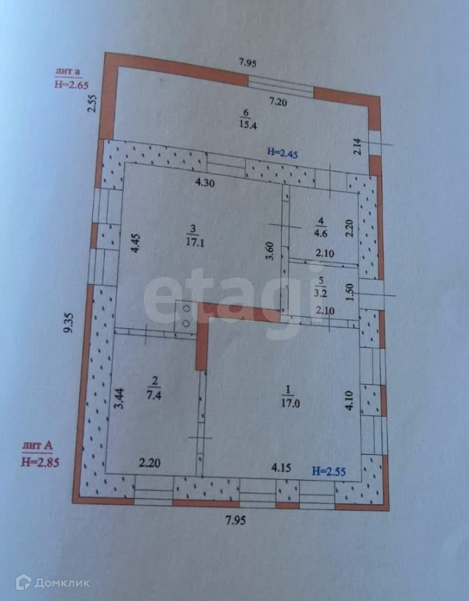 Общая площадь дома 64,7 кв.м. В доме три комнаты - две по 17 кв.м., третья - 7,5 кв.м.