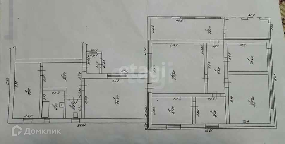 В доме 5 комнат, коридор, котельная, кухня 26.7 м2, совмещенный санузел, подсобное помещение переоборудованное под кухню, погреб.