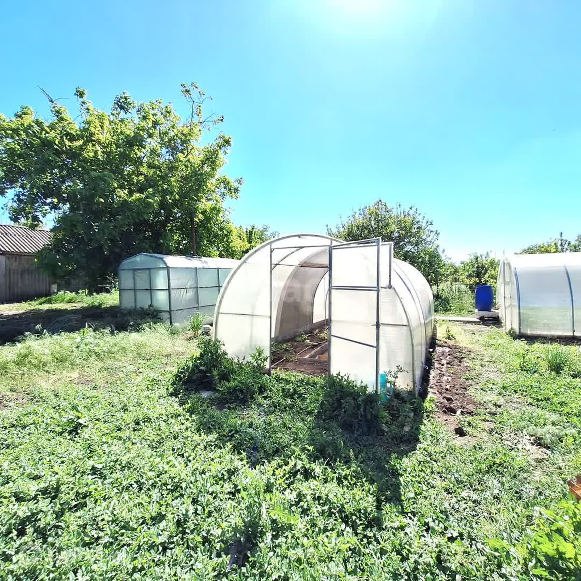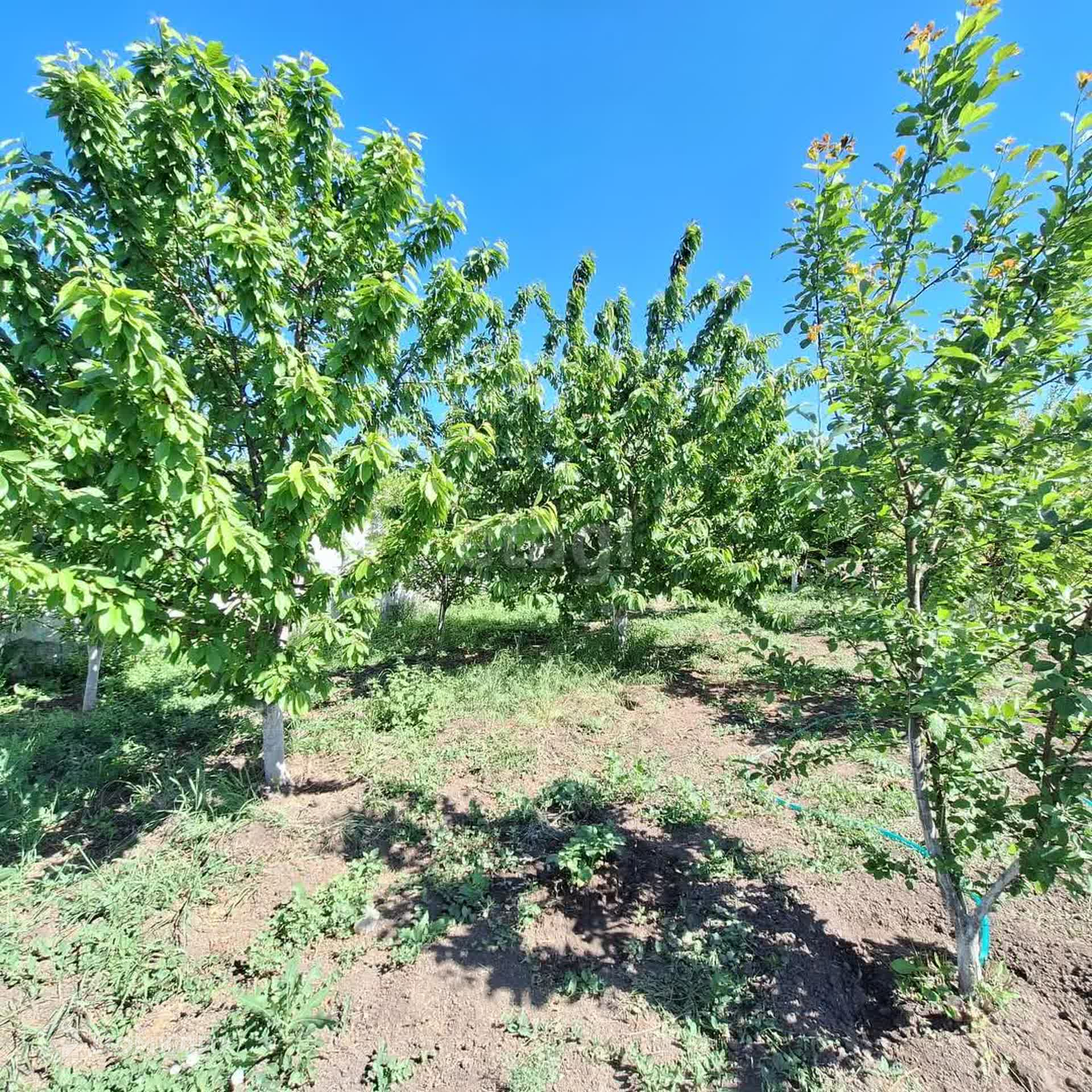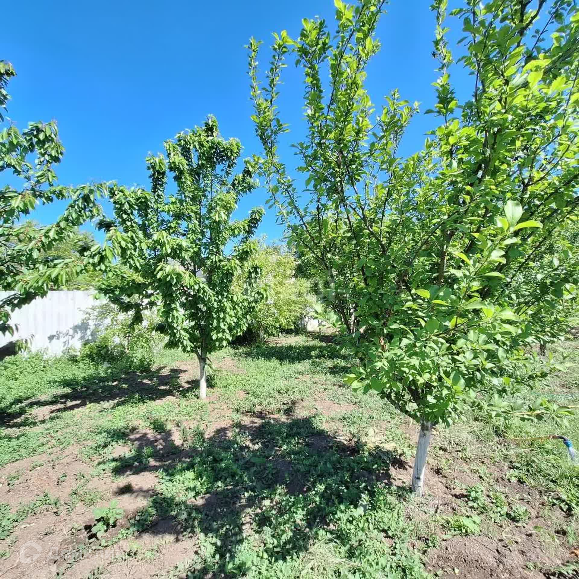 На участке шикарный молодой сад - более 30 фруктовых деревьев, 80 кустов винограда, теплицы. Имеется скважина для полива сада и огорода.