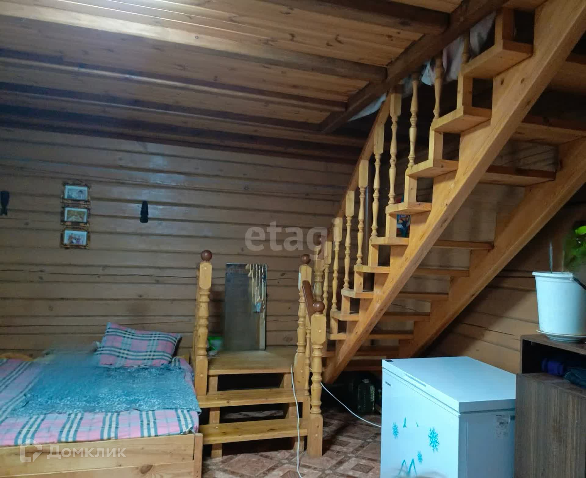 Общая площадь - 128,3 кв.м. На первом этаже располагается 2 комнаты, кухня, санузел, второй этаж - 2 комнаты. Материал стен - брус, облицован сайдингом. Дом требует внутреннего ремонта. Отопление - газовое, водоснабжение центральное, канализация - септик.