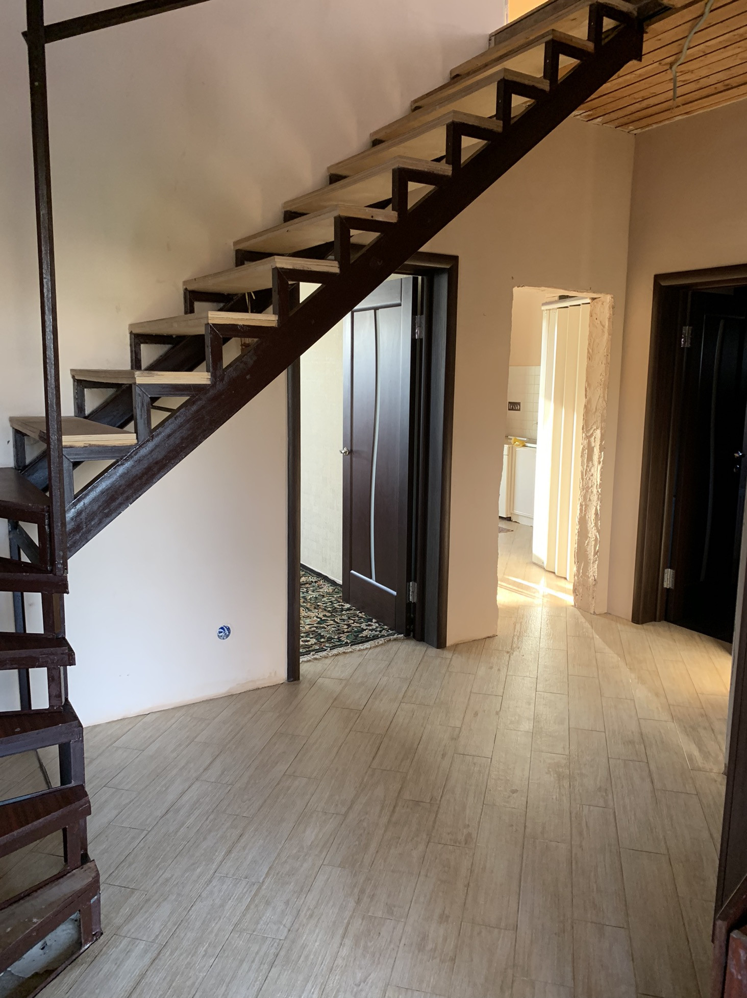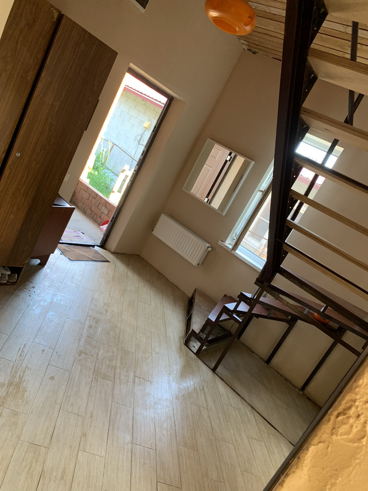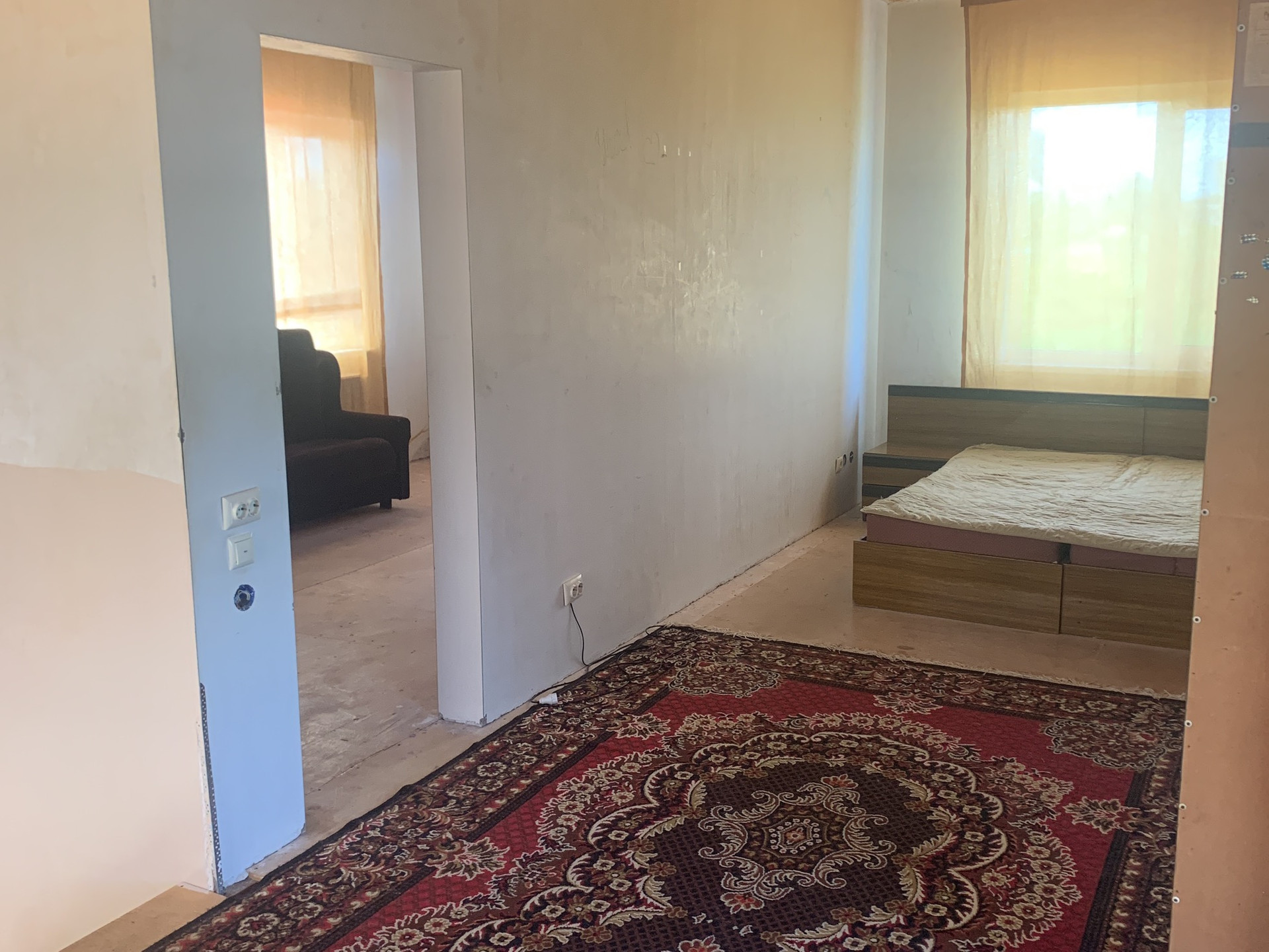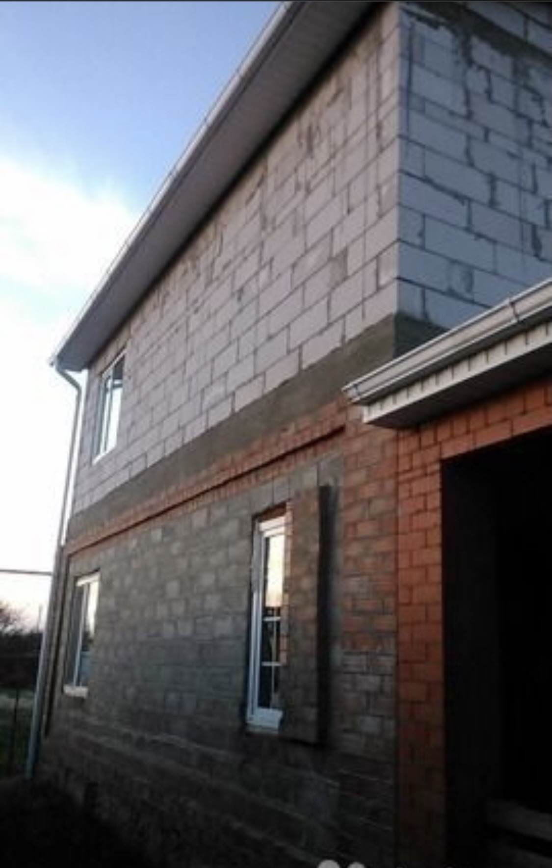 Дом не достроен! Второй этаж из газобетонных блоков. Готовая ванная и туалет (дом эксплуатируется). Комната на 1-ом этаже завершена ремонтом. Оба этажа отштукатурены гипсом. Поставлены пластиковые окна. Первый этаж - теплые (отдельно регулируемые) полы из плитки.  Сварена железная лестница на второй этаж! Гараж на две машины. Подведен газ, электричество, водоснабжение централизованно (заведено). Дом отапливается газом. Канализация, септик  - сделан (функционирует). Котел (отопление работает) - Валиант. Земельный участок - 9 соток! Земля в собственности! Введен в Эксплуатацию менее трёх лет!