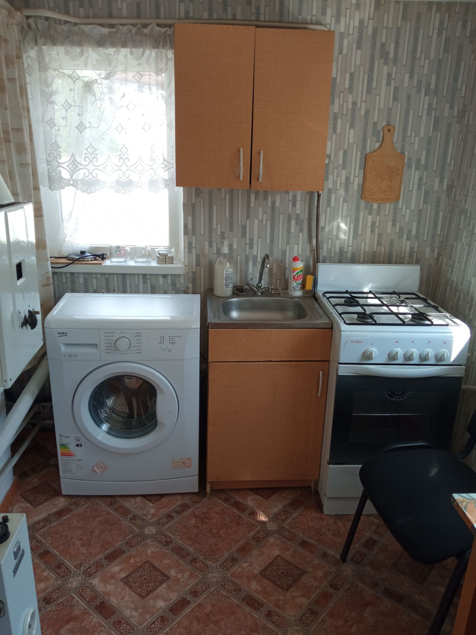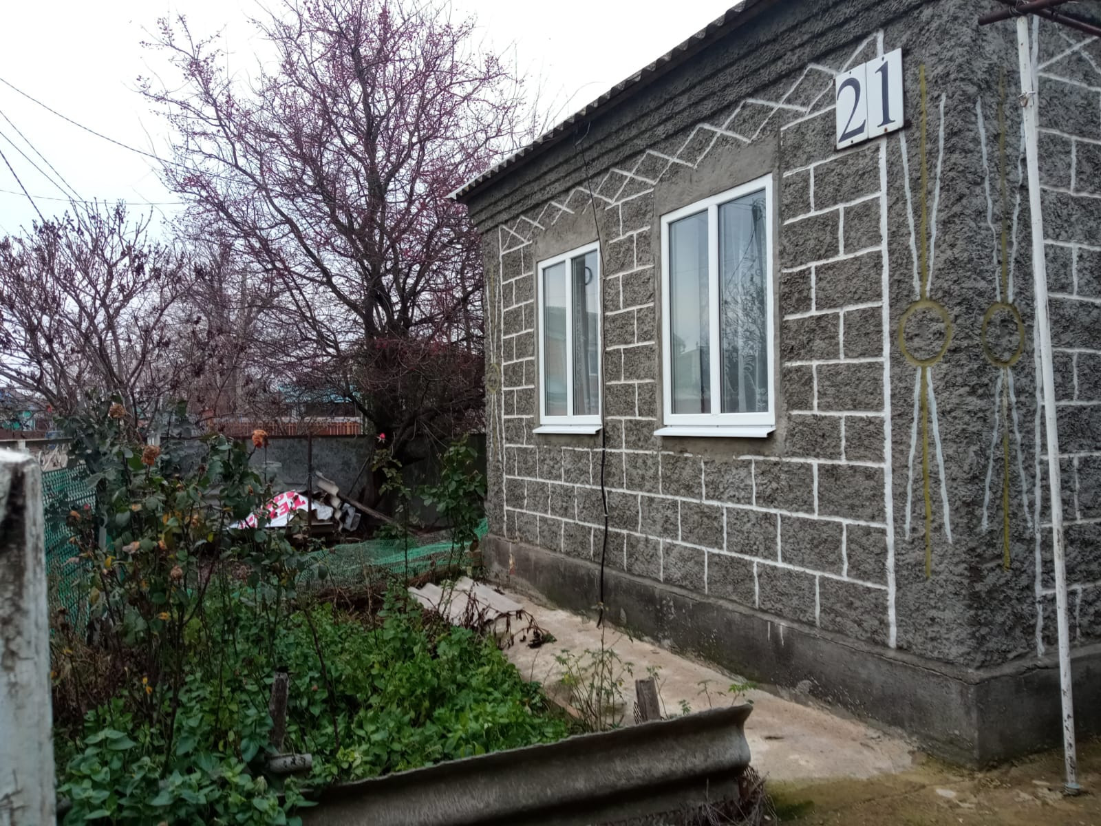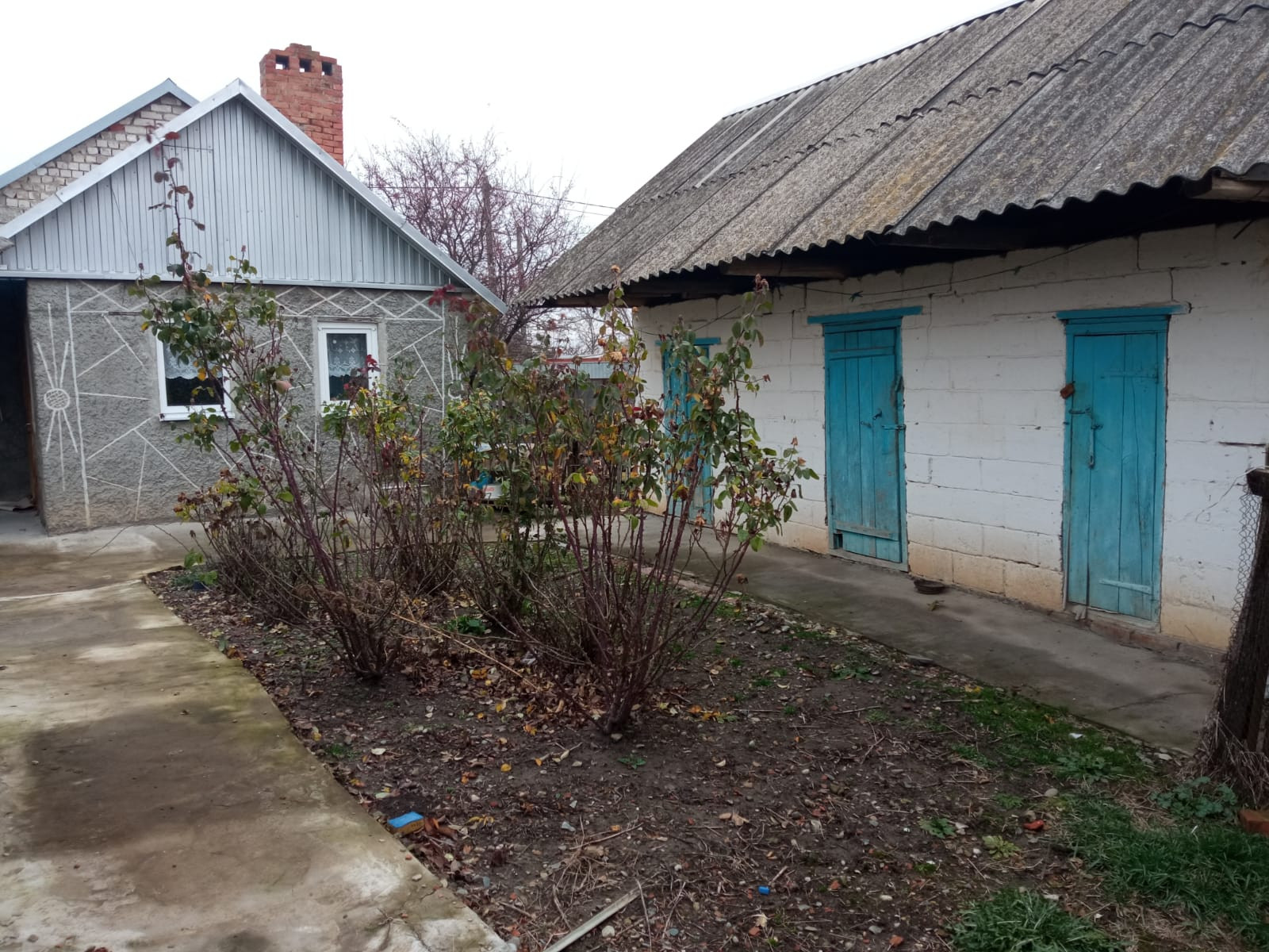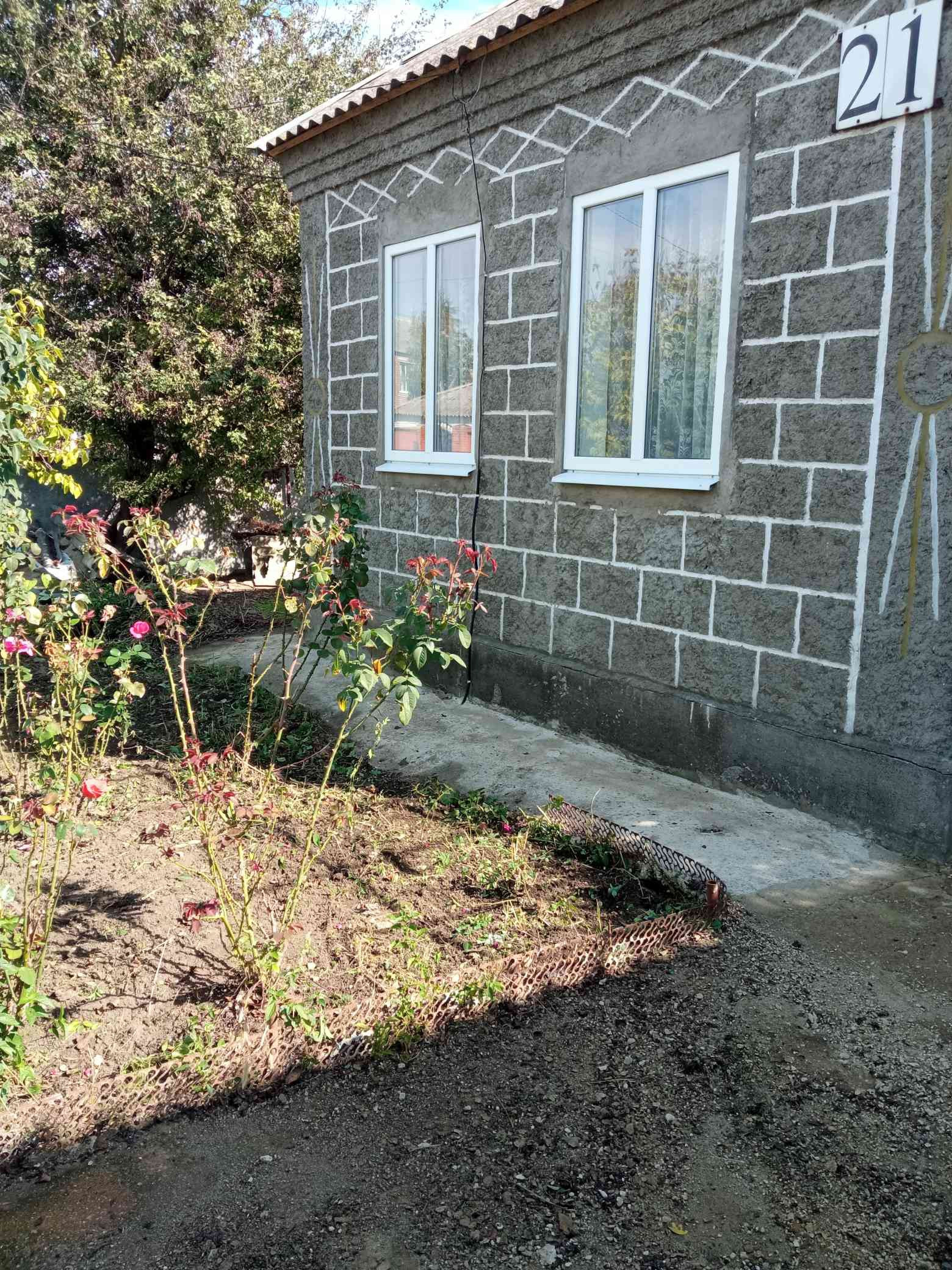 Дом блочный штукатуренный  2 комнаты. Кухня .Ванна с туалетом совмещенные. Имеются хоз. постройки. Подвал. Молодой сад. Двор асфальтирован  есть виноградник. Рассматриваем всё варианты оплаты.