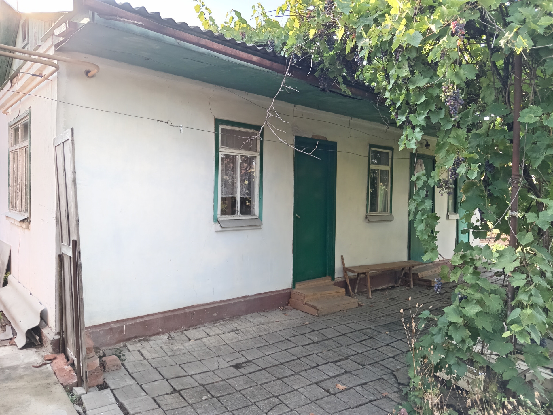 Дом на центральной улице. Рядом школа, Пятерочка, стоматология. Дом теплый. хорошая шумоизоляция.В доме небольшой подвал(всегда сухой).Летняя кухня( подведен газ)и сарай  под одной крышей, небольшой гараж.Парковочное место .Много плодовых деревьев, виноград.Кадастровый номер участка и дома проверены в Госреестре на дату май 2024г