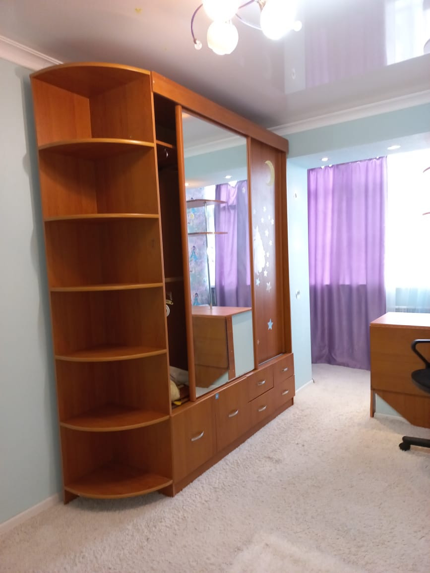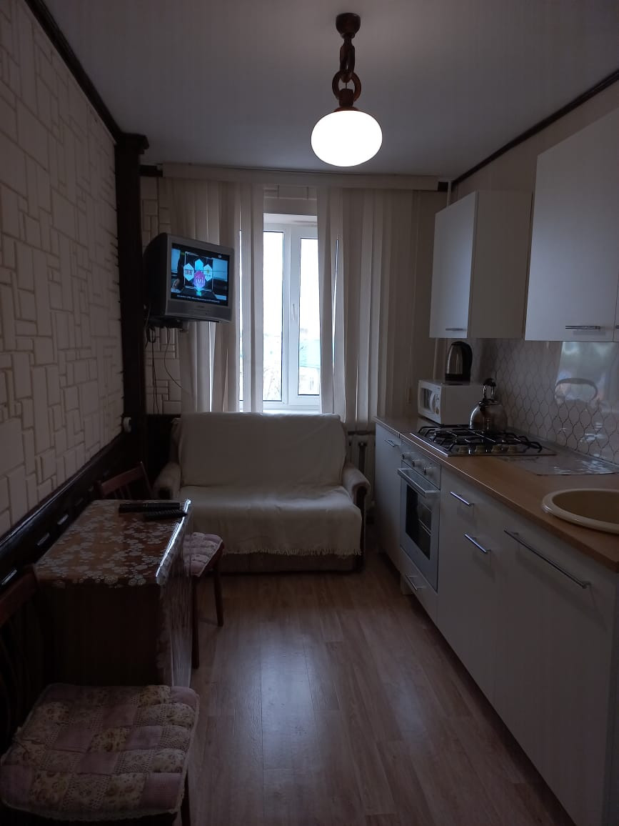 Квартира располагается на пятом этаже пятиэтажного кирпичного жилого дома. Комнаты раздельного расположения. На стенах обои нейтральных оттенков, с акцентными зонами, натяжные потолки, со встроенным точечным освещением, полы застелены ламинатом. Большая застекленная лоджия, объединена с комнатами, а застекленный балкон, имеет выходе из комнаты. На кухне стены оклеены обоями, рабочая зона облицована “фальш-панелью”, натяжной потолок, пол застелен линолеумом. С/у раздельный, облицован плиткой. Установлены металлопластиковые окна и двери. Счетчики на коммуникации. Входные дверь - металлическая. Чистый ухоженный подъезд. В дом заведено несколько интернет-провайдеров. Квартира находится в самом центре станицы. Парковка и детская площадка во дворе. Из окон квартиры видна станция скорой помощи,детская поликлиника,стоматология. В непосредственной близости располагаются три детских садика,Две общеобразовательные школы,рядом лицей им.Резникова,фитнес клуб " Минерал", Дворец спорта так же виден из окон квартиры, стадион в 5 минутах ходьбы от дома. Магазины разных групп товаров.    В непосредственной близости находятся два рынка Универсальный и Центральный. Центральный парк культуры и отдыха и речка в 10 минутах ходьбы.Сельская администрация и администрация района,пожарная защита.Через два квартала от дома христианская церковь. Остановки ибщественного транспорта расположены рядом.
