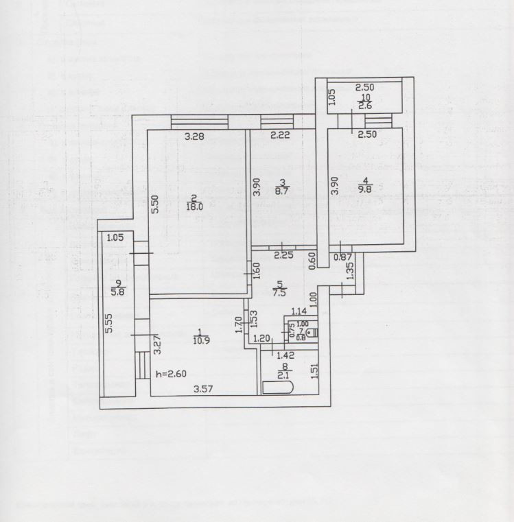 Высота потолков 2.6 м