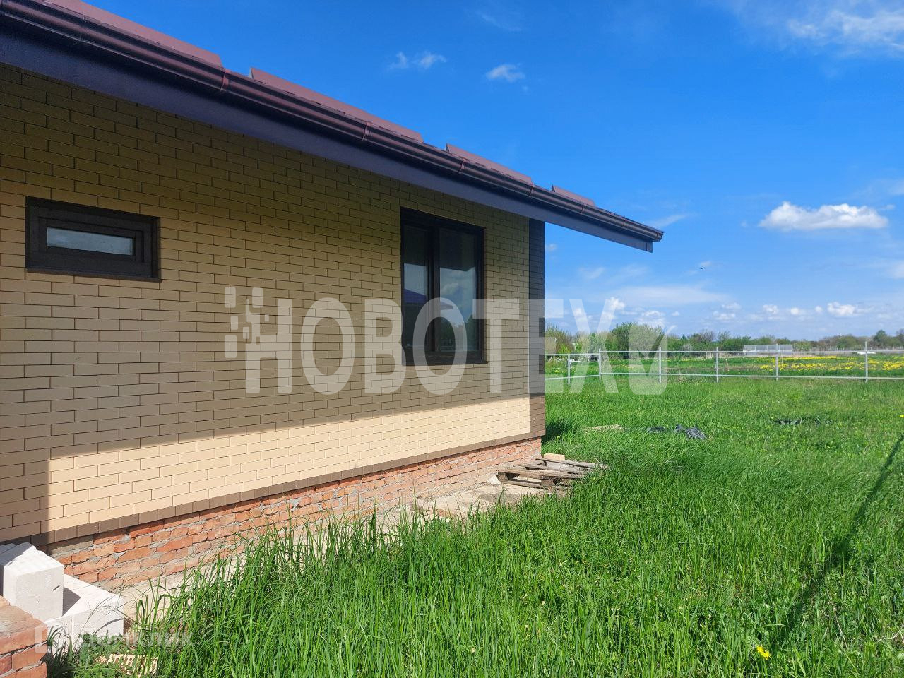 Арт. 43333001 прекрасный светлый дом с большими окнами , ждет своих хозяев . В доме три комнаты ,две спальни и огромный холл , есть возможность свободной планировки , можно оставить все как есть и зонировать территорию , на прихожую и кухню-столовую . сан узел совмещен , пол бетонная стяжка , готовился под укладку теплого пола , стены - пред чистовая отделка  ,   Свет и вода заведены в дом , газ тянут .  на улице идет полная застройка новых домов , соседи дружные приличные люди . В этом году запланировано на улице прокладывать асфальт . не далеко два садика , школа чуть дальше , и в школу возит специализированный автобус . рядом строится новая детская поликлиника . До моря 230 км , свои ягоды фрукты , чистый воздух !