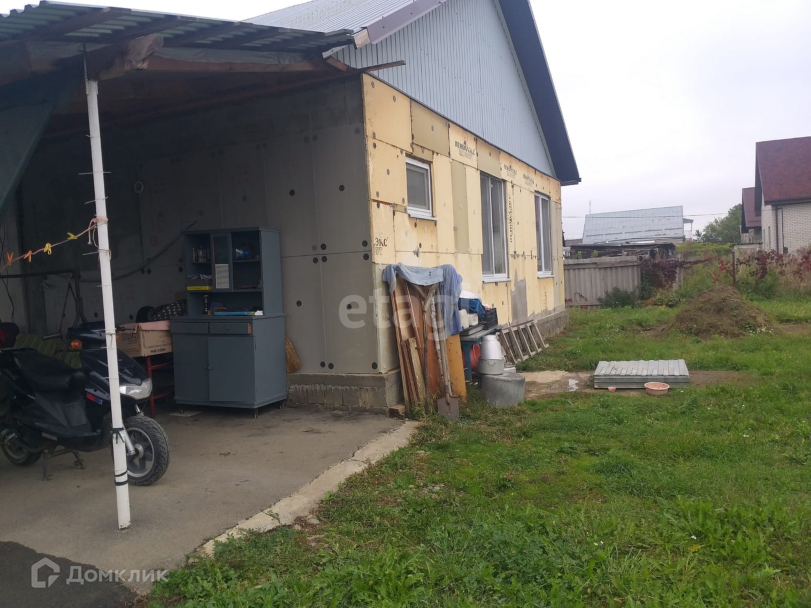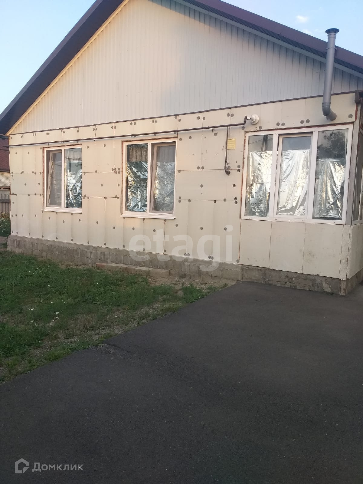 Въезд и под навесом двор заасфальтирован. К дому имеется пристройка под котельную, на данный момент установили газовый котел, после подключения газа, можно использовать его под отопление. Свет заведен в дом. Окна везде ПВХ. Канализация септик 3 куба. Обложен плитой перекрытия. Вода скважина имеется.