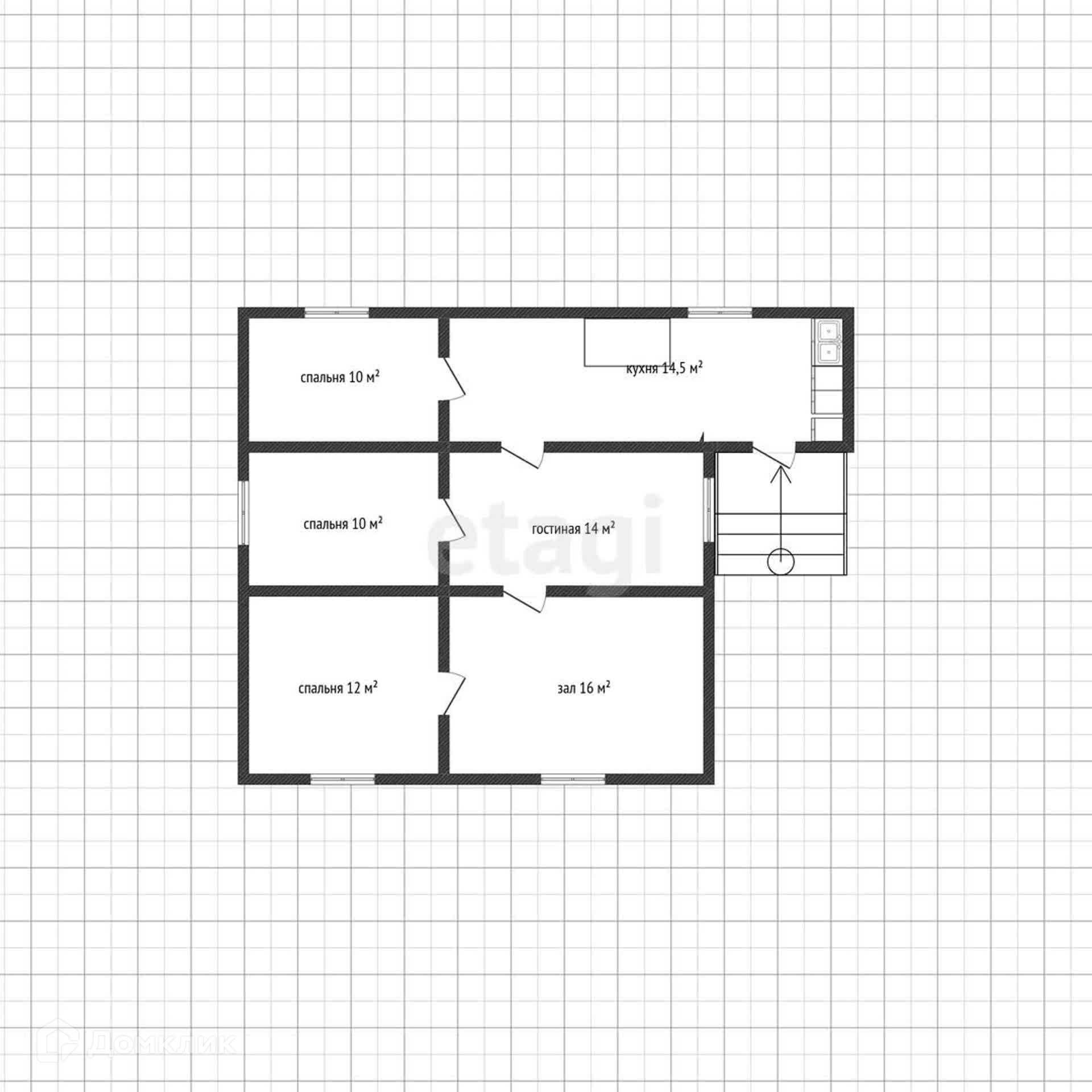 1-этажный дом, 70 м2, на продажу в станице Ханской, Кооперативная улица