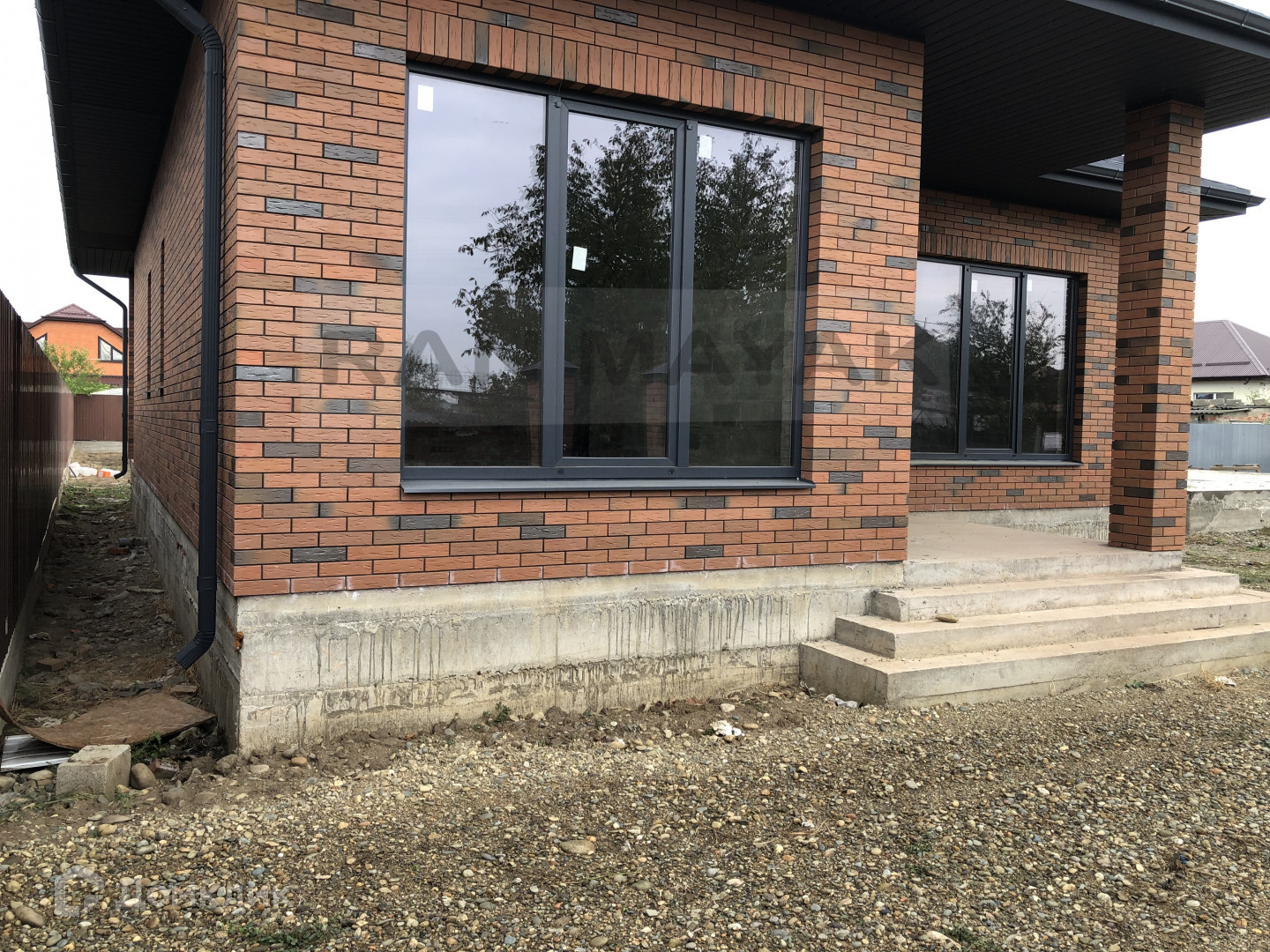 Стены - бетонный блок, облицован керамическим кирпичом.