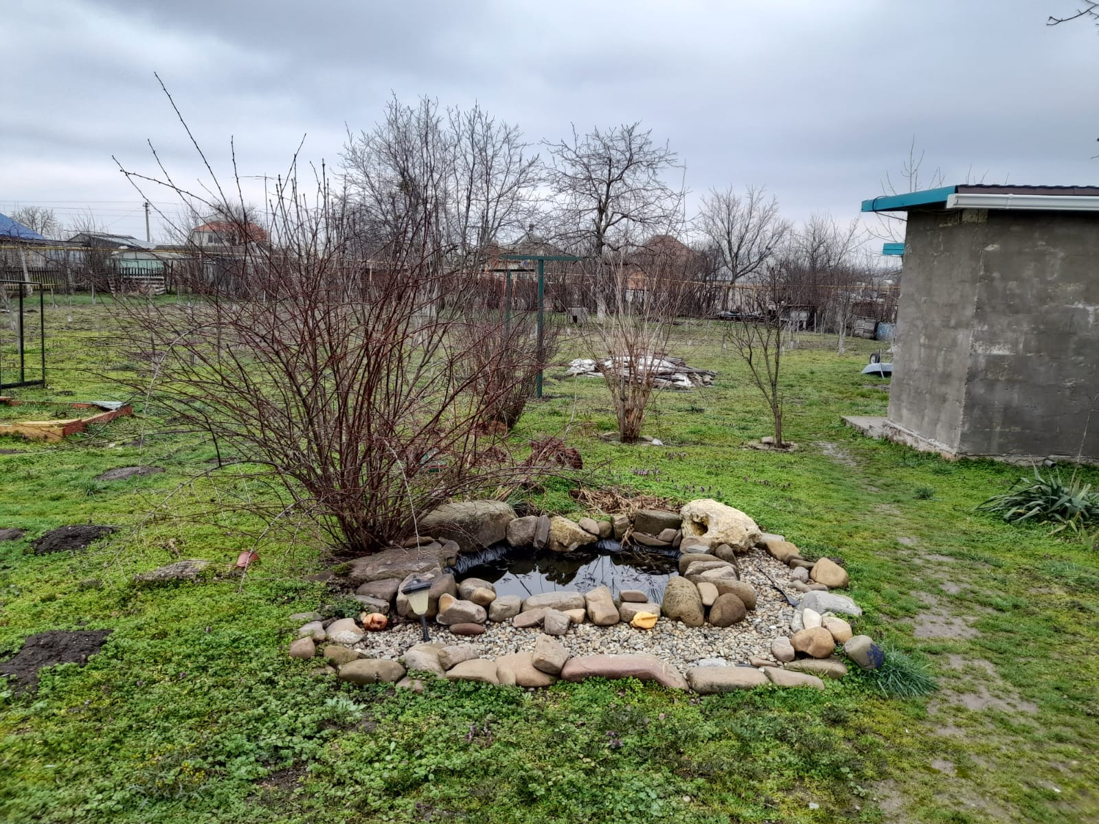 Во дворе большой капитальный навес. На участке молодой плодоносящий сад, виноградник. Есть хозяйственные блочные постройки: кладовка, уличный туалет, душ.